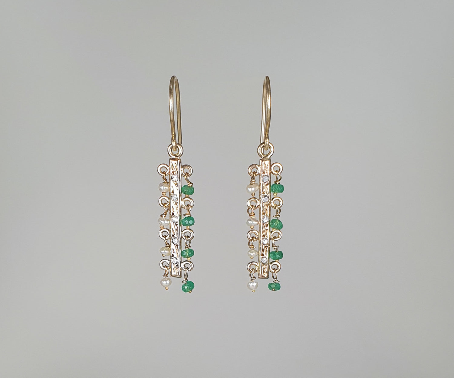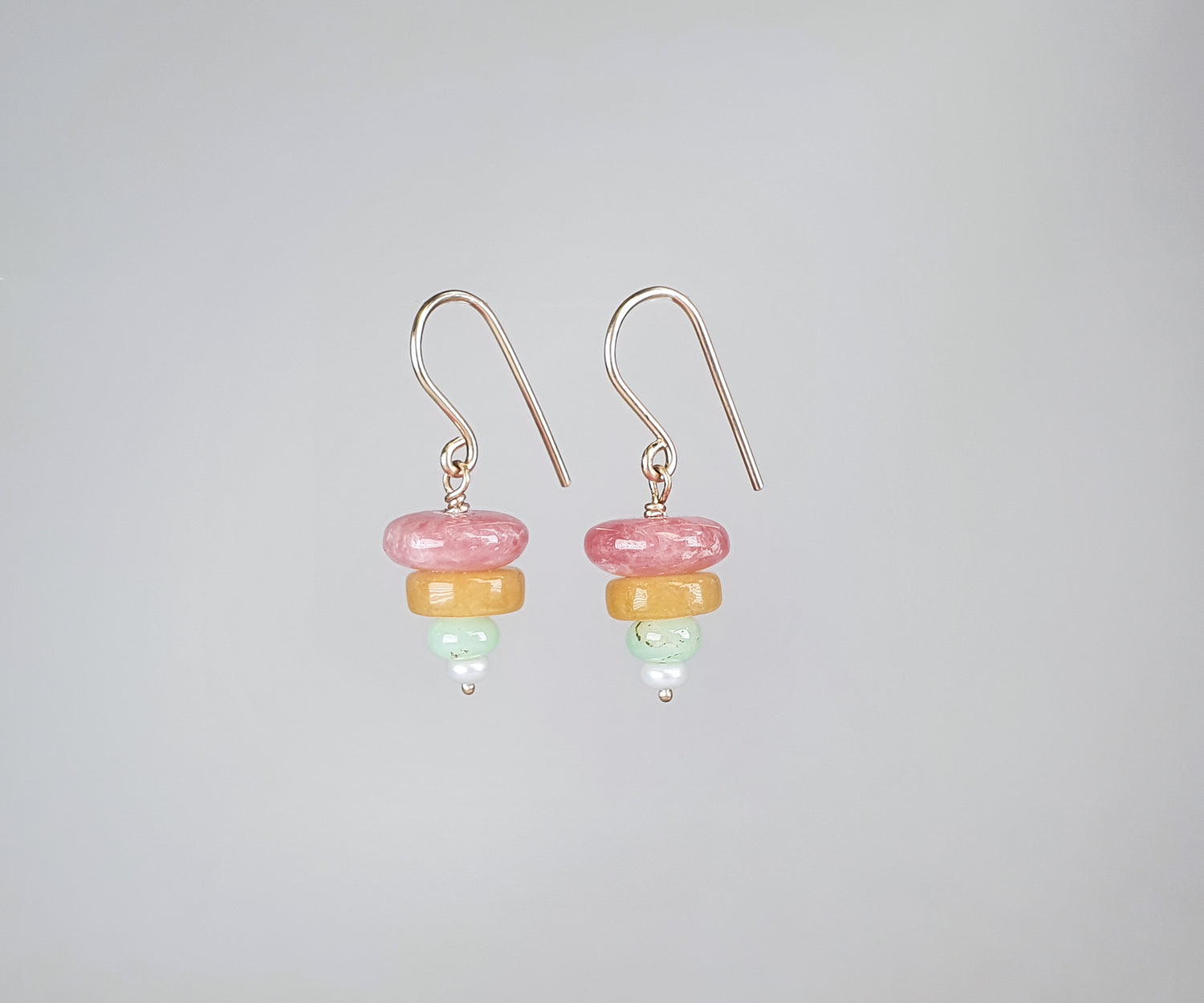 Dangly and playful jewellery collection that uses colour. Prefect for layering, stacking...