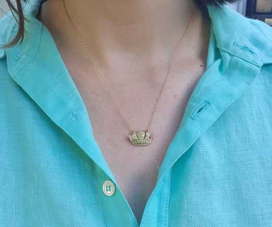 Antique White Enamel Skull Pendant with Garnet Eyes and Gold Teeth