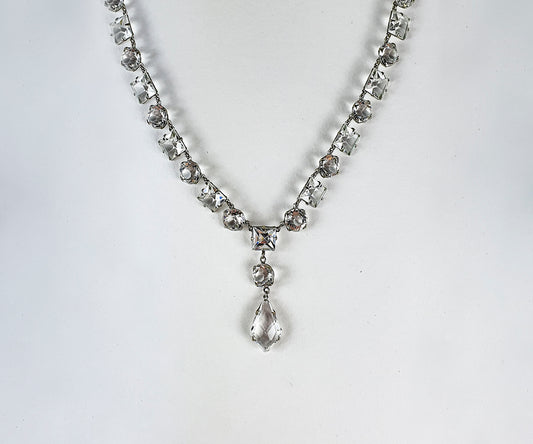 Art Deco Three Crystal Circles and Silver Collar Necklace