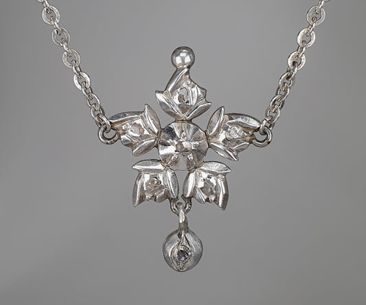 Edwardian Diamond Flower Necklace With Old Cut Diamonds