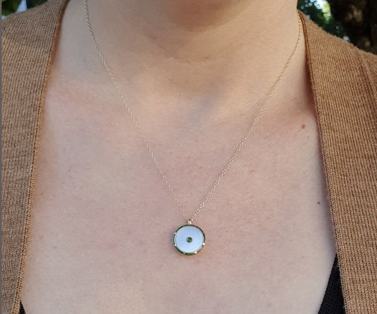 Victorian Green Enamel Gold Button Necklace with Tsavorite and MOP