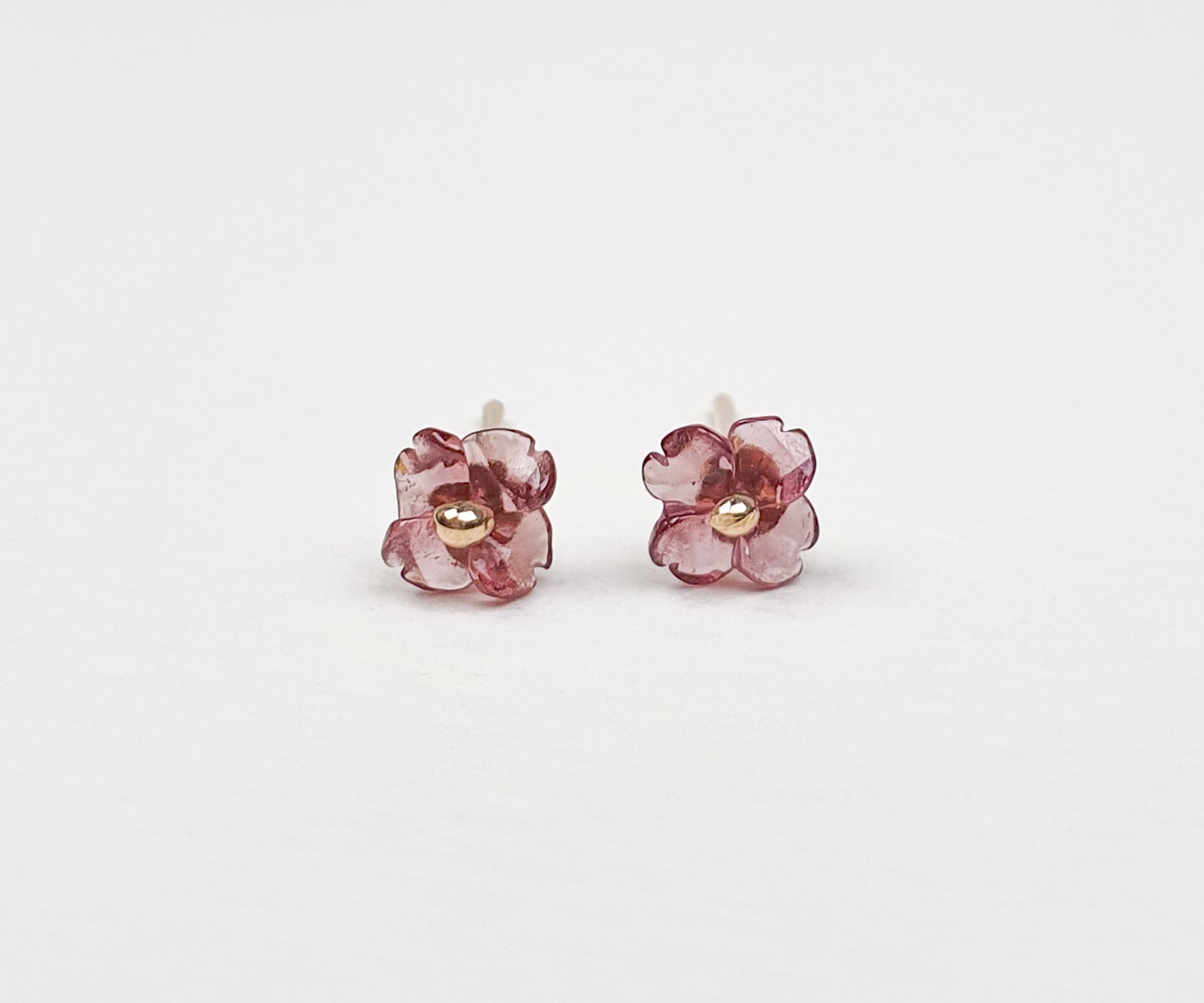 Amazing carved garnet flowers stud earrings made in recycled gold.