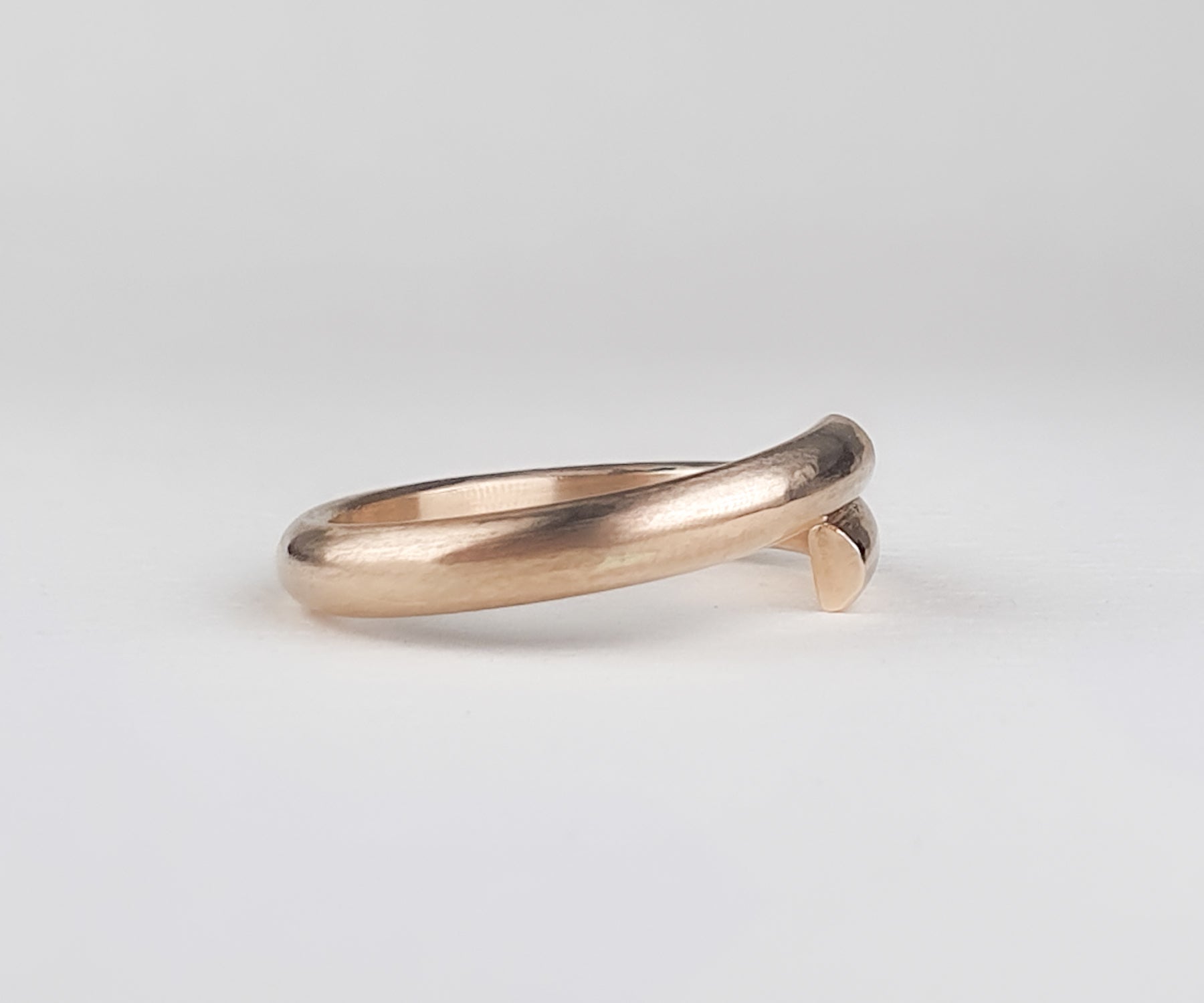 A ring I made on a whim, for myself from an antique men's band. It has brought me so much praise. Yes it's simple but it's stunning and it will forever be admired. This ring is very symbolic, I am a realist you see and I don't subscribe to the romantic notion of eternity rings (though they are a great design!). The name 'fuck the eternity' reflects that quite succinctly and strongly. But instead of focusing on the negative notion I would like everyone to see the positive side of it - enjoy the here and now, be in the moment, seize the day! This anti eternity ring is fantastic on its own, as a pinky for example, or looks brilliant stacked against other rings - even the irregular ones that are difficult to stack against!