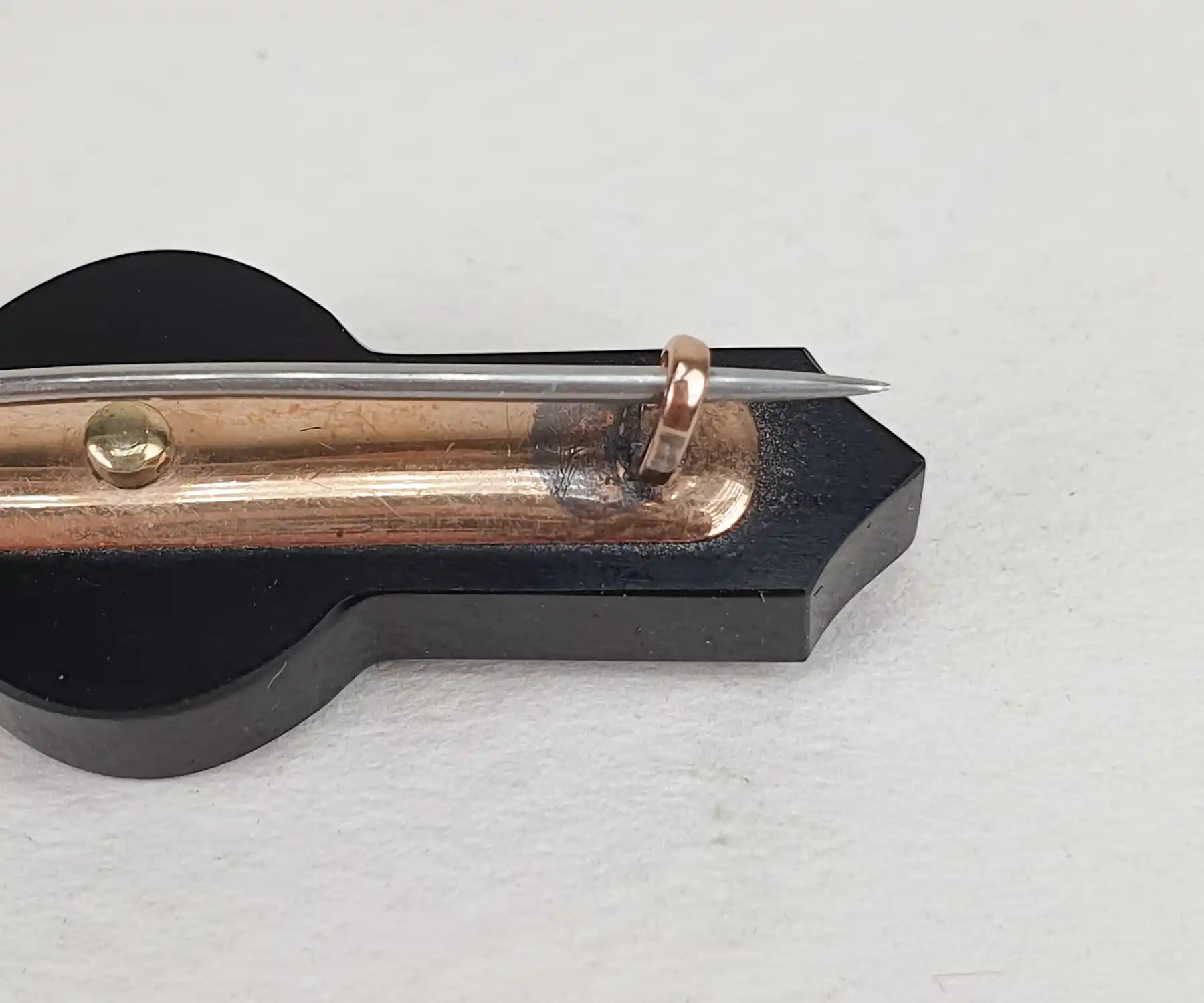 Materials: 9ct yellow gold, seed pearls and Whitby Jet.