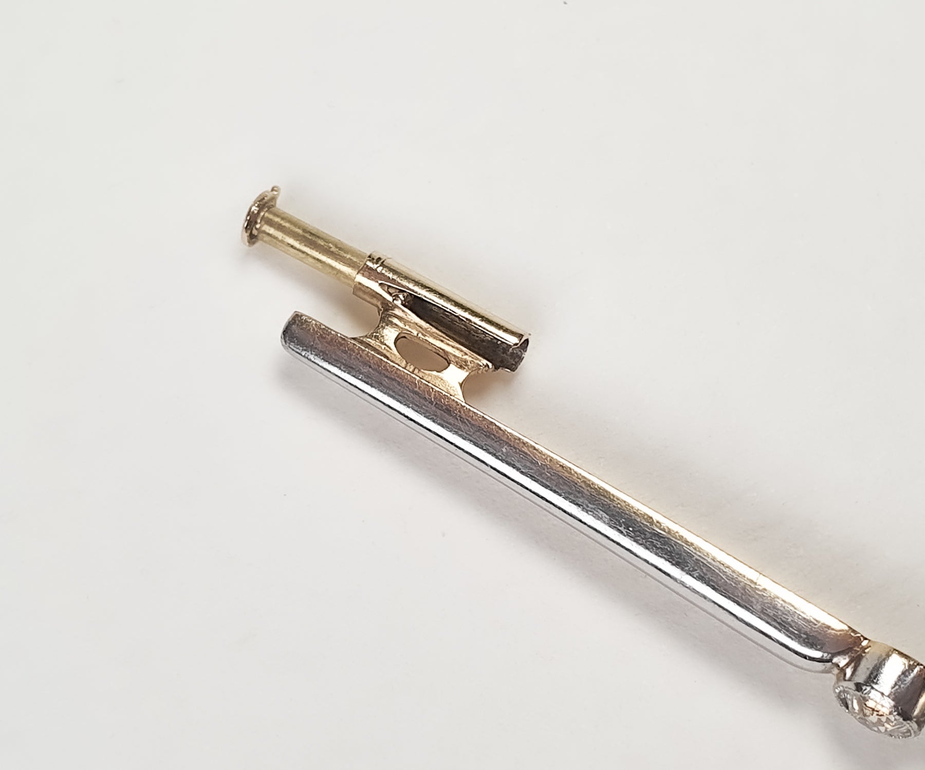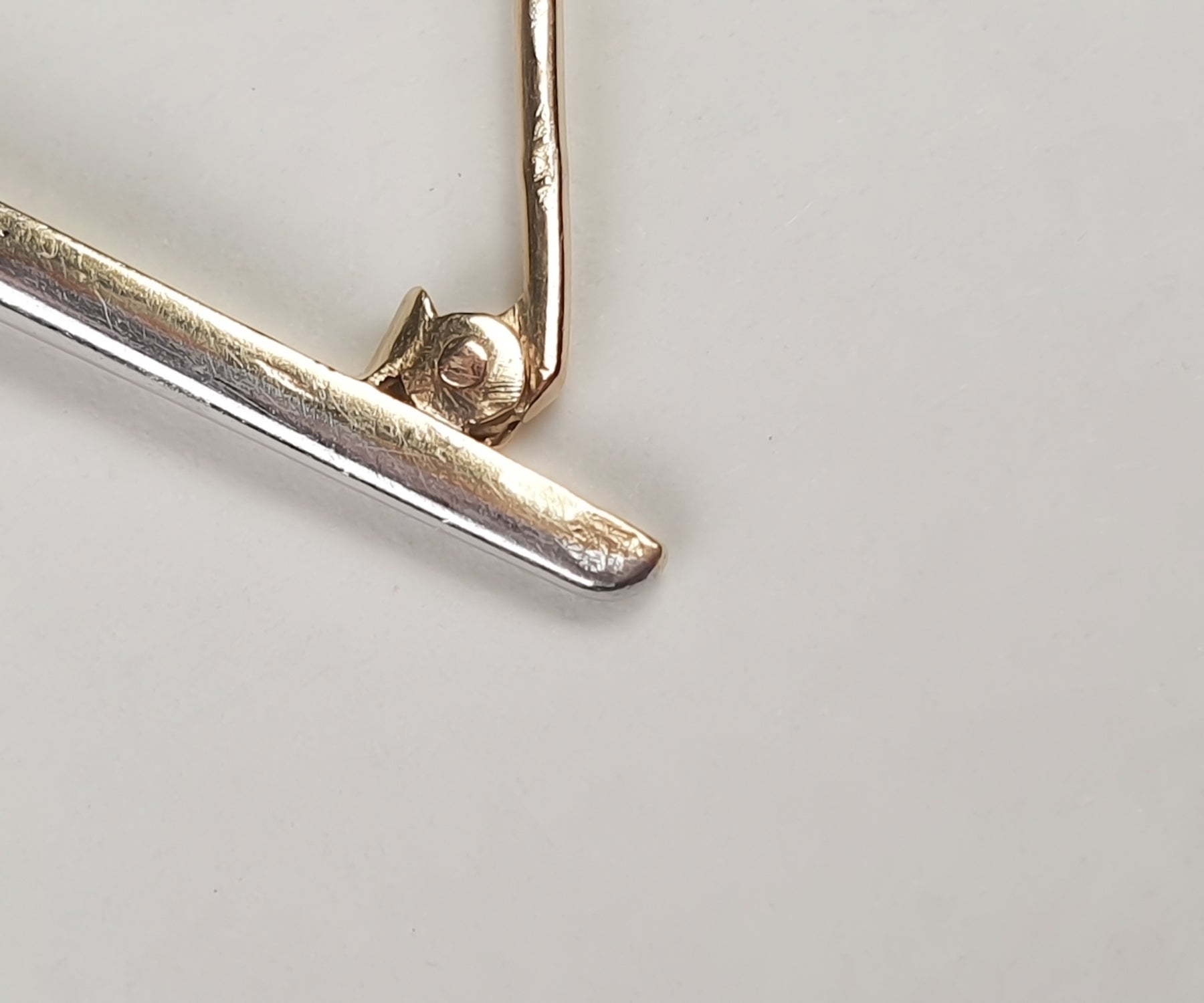 The brooch is made in mixed metals - platinum on top (facing up) and 18ct yellow gold at the bottom - also a usual Art Deco way of going about jewellery making. To top it all the fastening of the brooch is also beautifully detailed and precise.