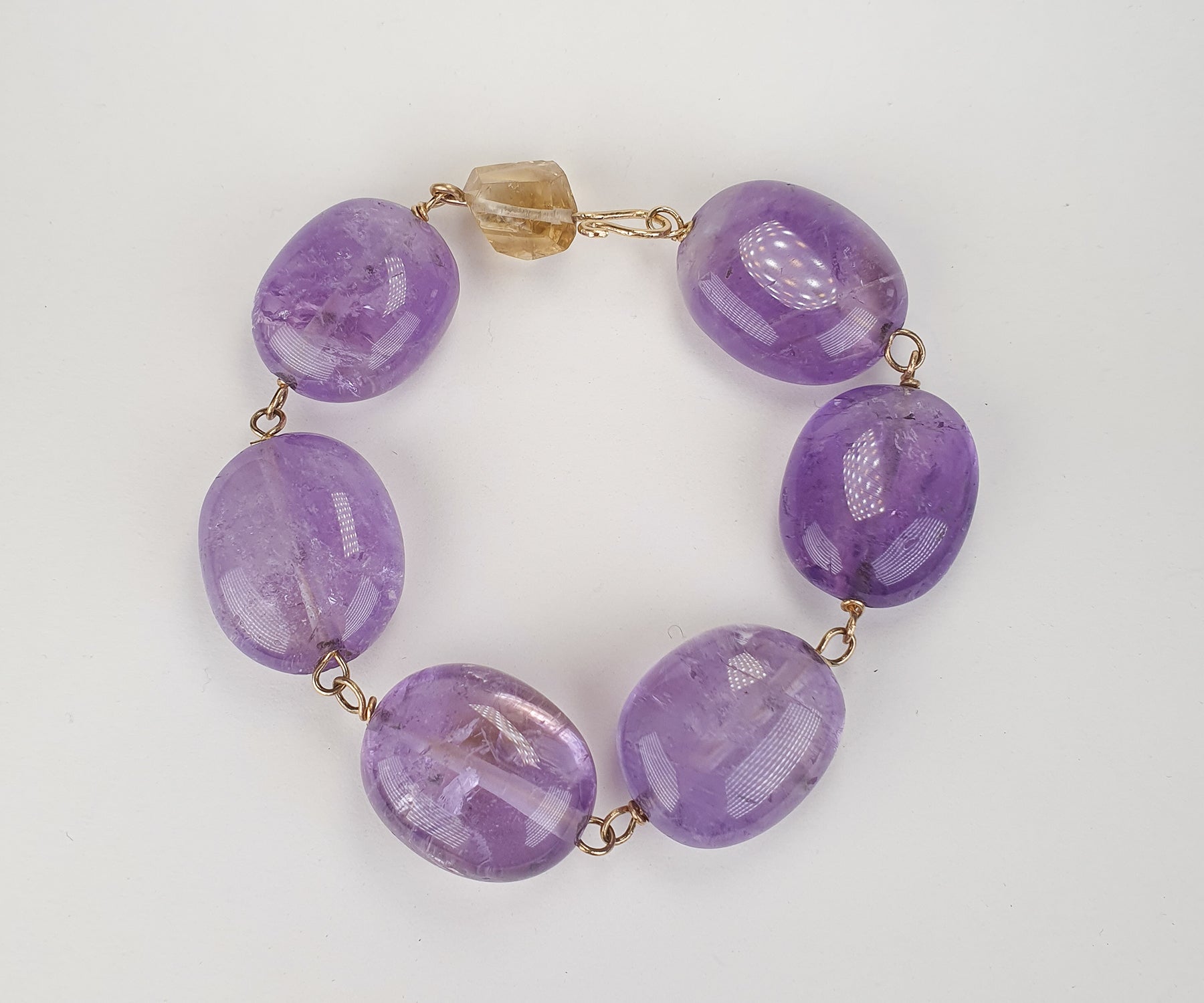 Chunky Candy Amethyst and Citrine Bracelet in Solid Gold