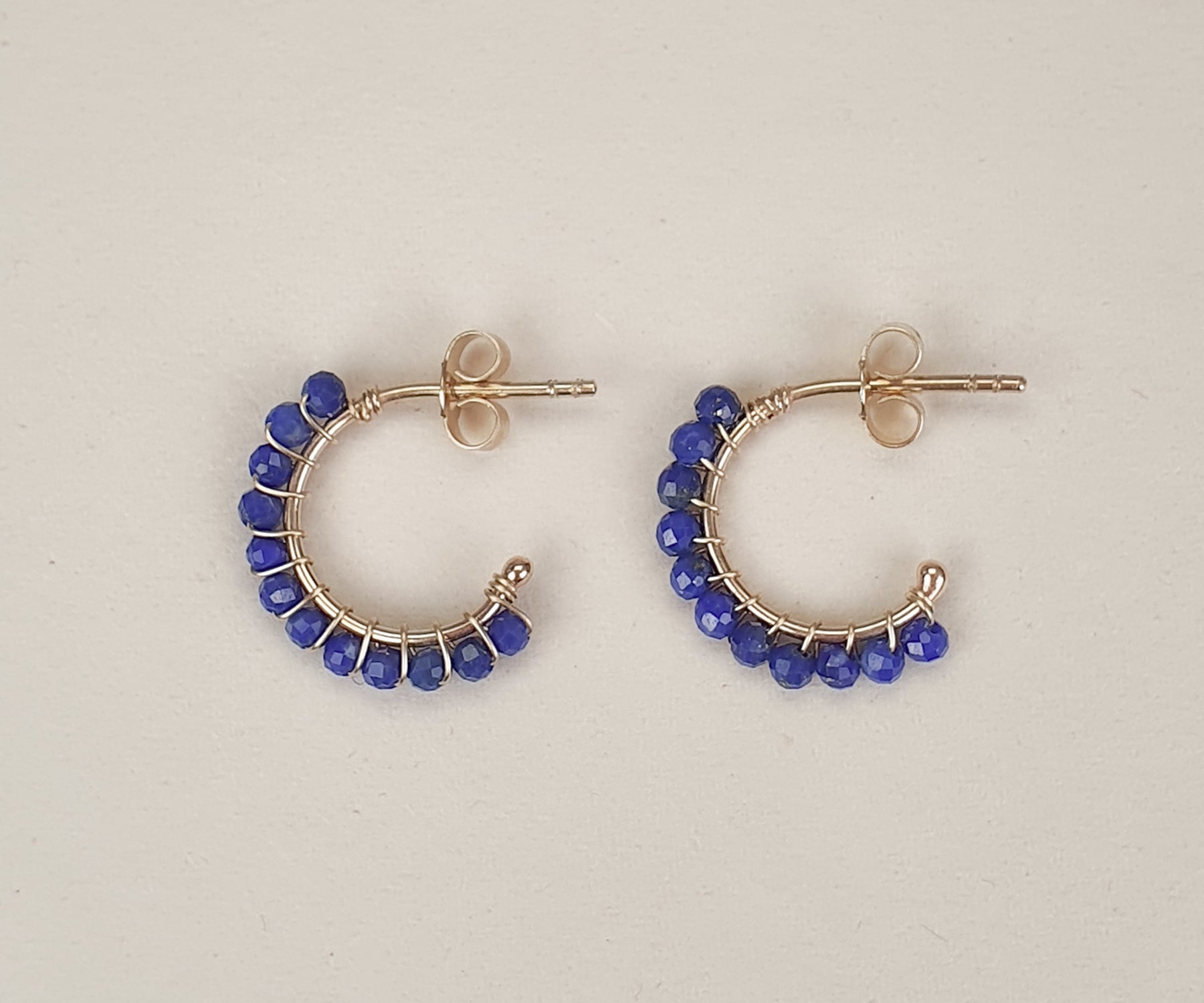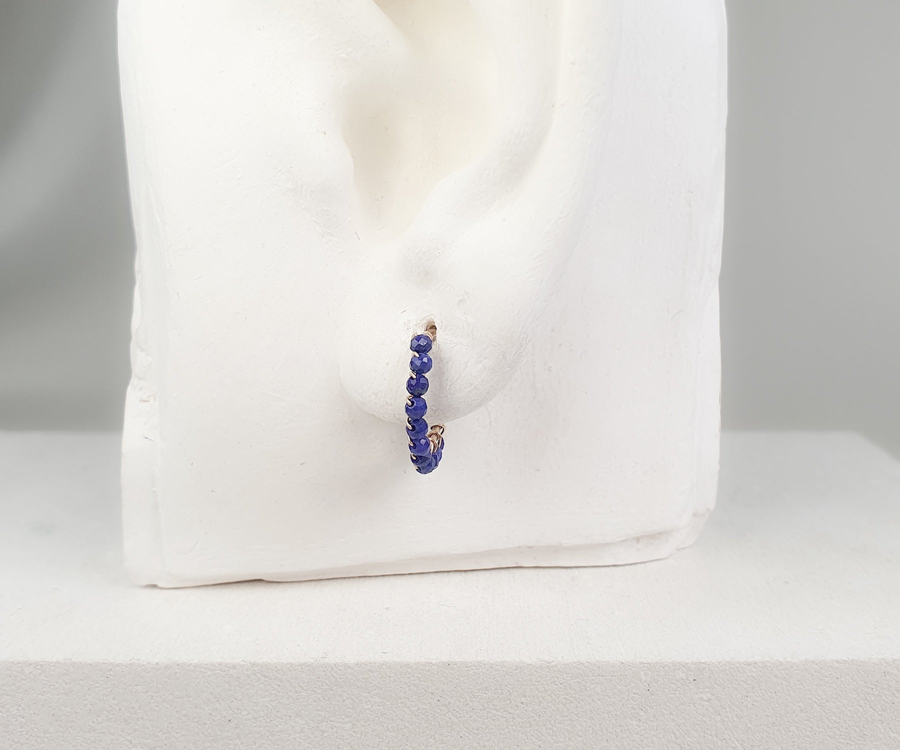 These fantastic bright and happy hoops are sure to make everyone's day. Made of real lapis lazuli beads and 9 carat gold, they are our clients' favourite hoops!