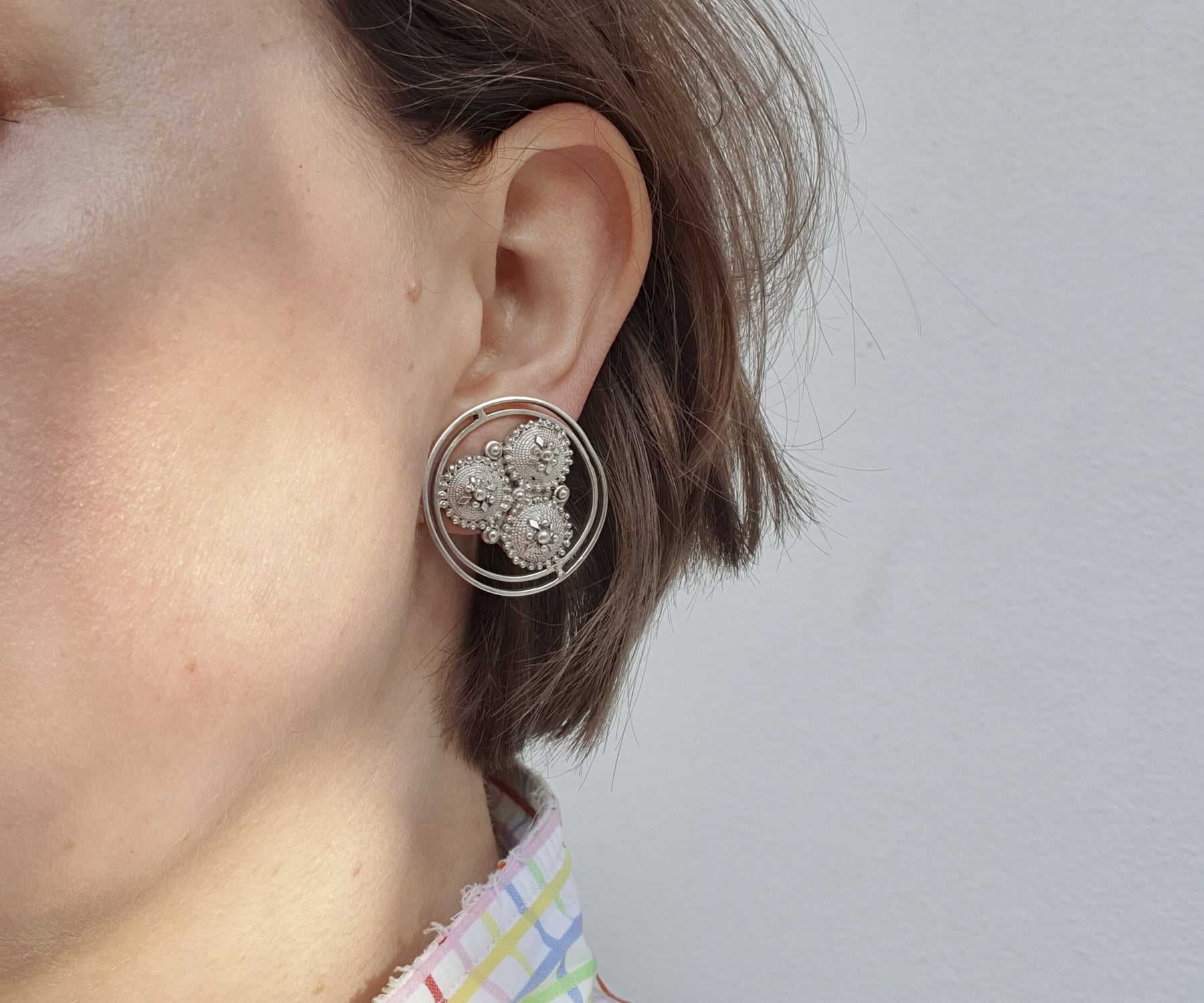 Vintage, opulent but incredibly elegant and full of character - silver clip-on earrings with a traditional granulation pattern.