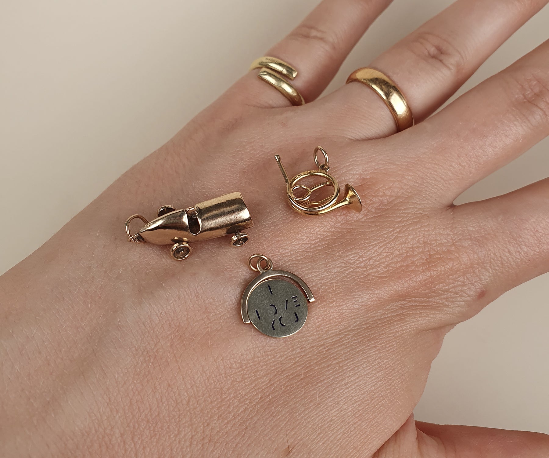 The coolest charm for a car racing lover! With spinning wheels and a simple aero-dynamic design, this is one of the most elegant depiction of an old racing car.