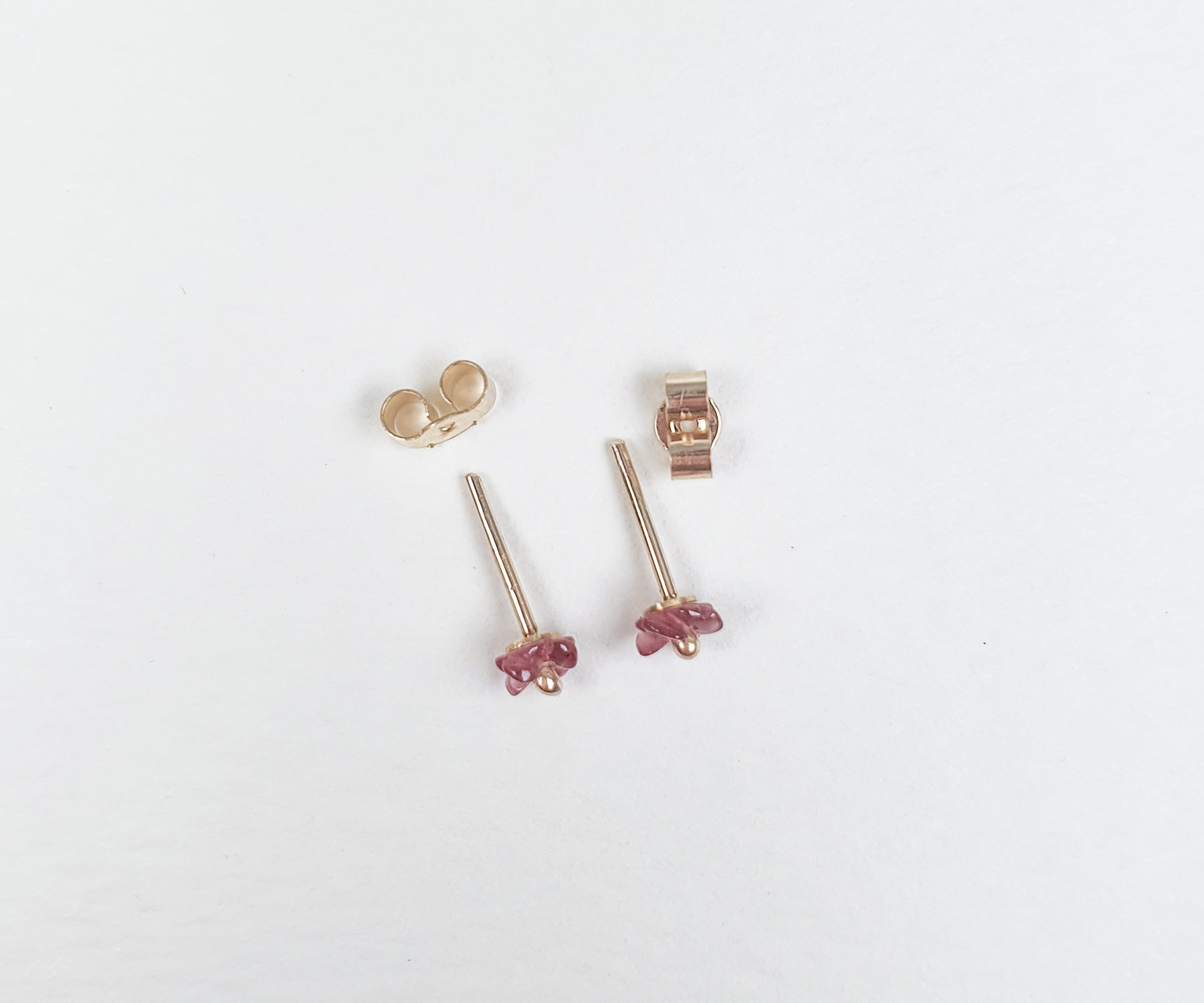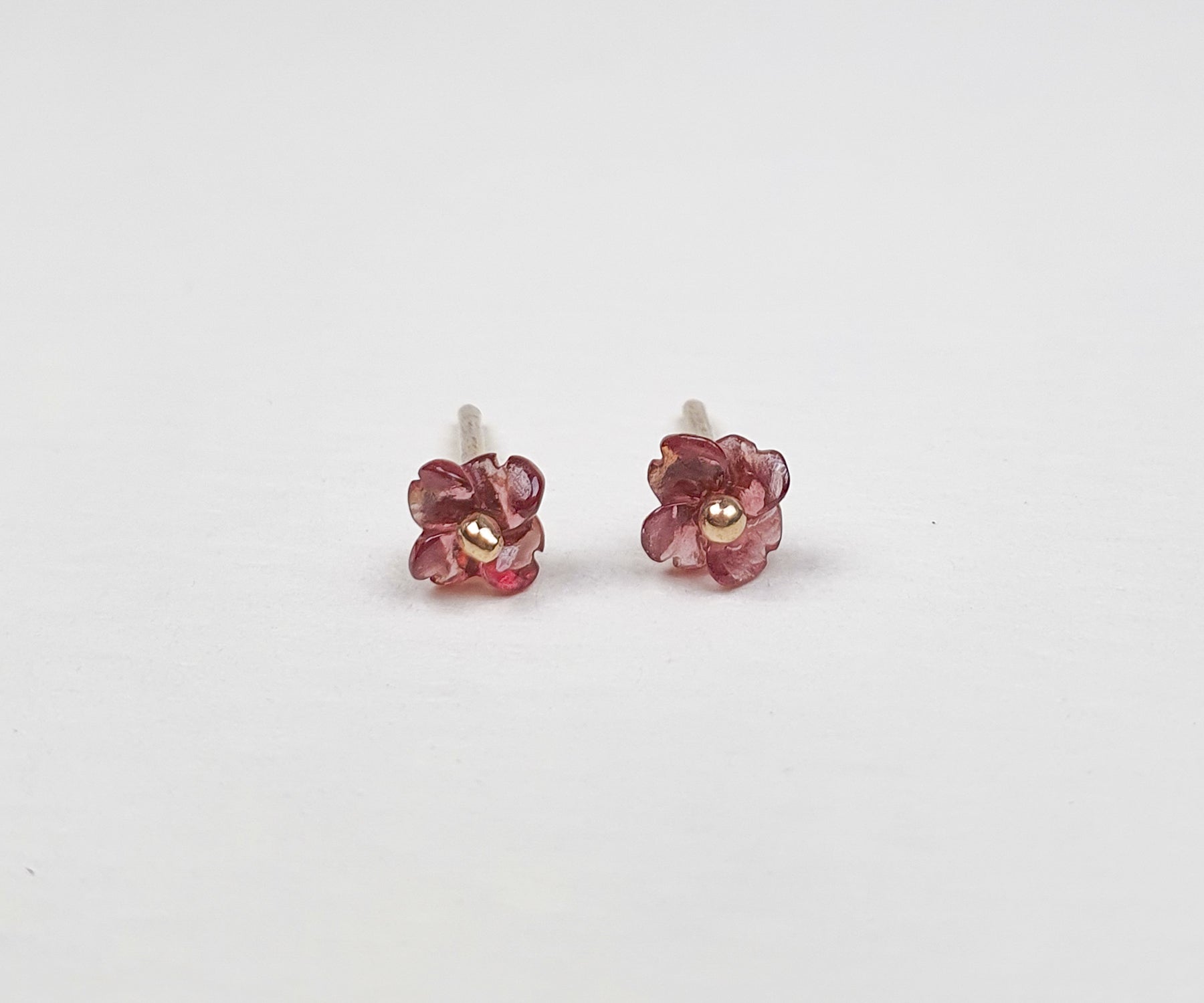 Amazing carved garnet flower stud earrings made in recycled yellow gold. The most unusual perfect everyday earrings!