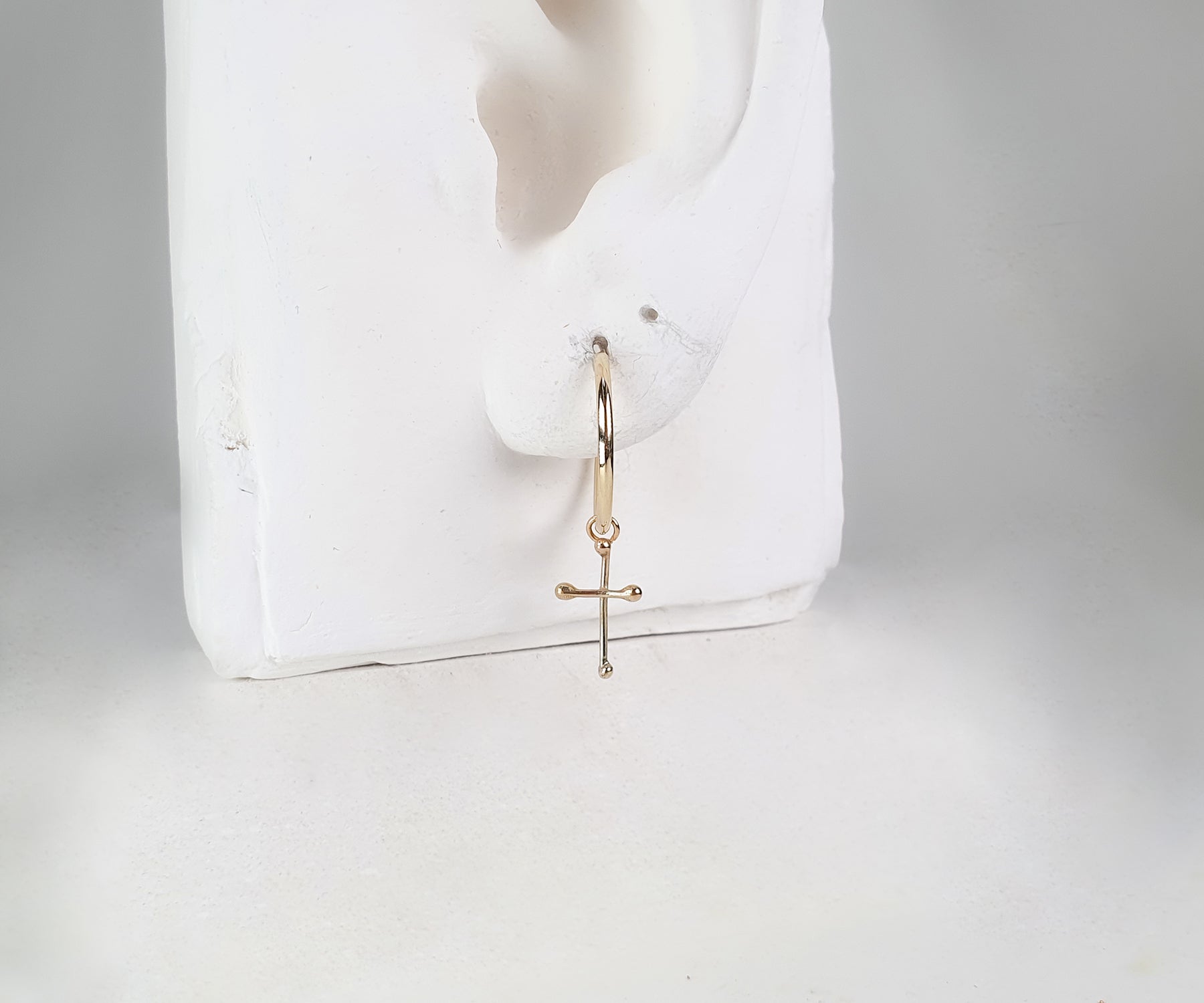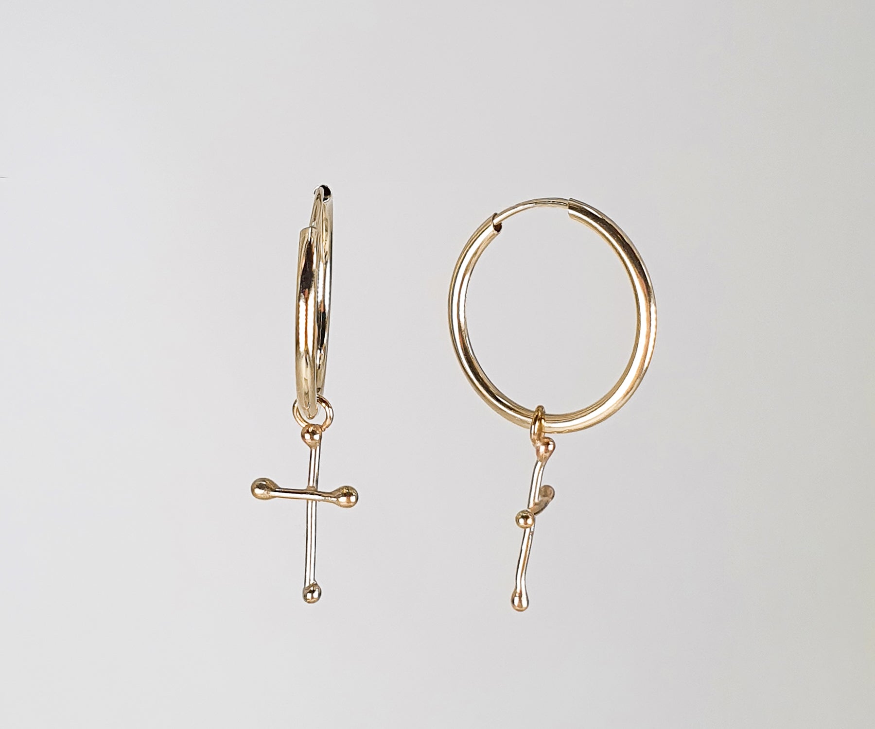 Delicate Kleks Crosses dangle gently from equally delicate 9ct gold hoops. Fantastic everyday earrings.