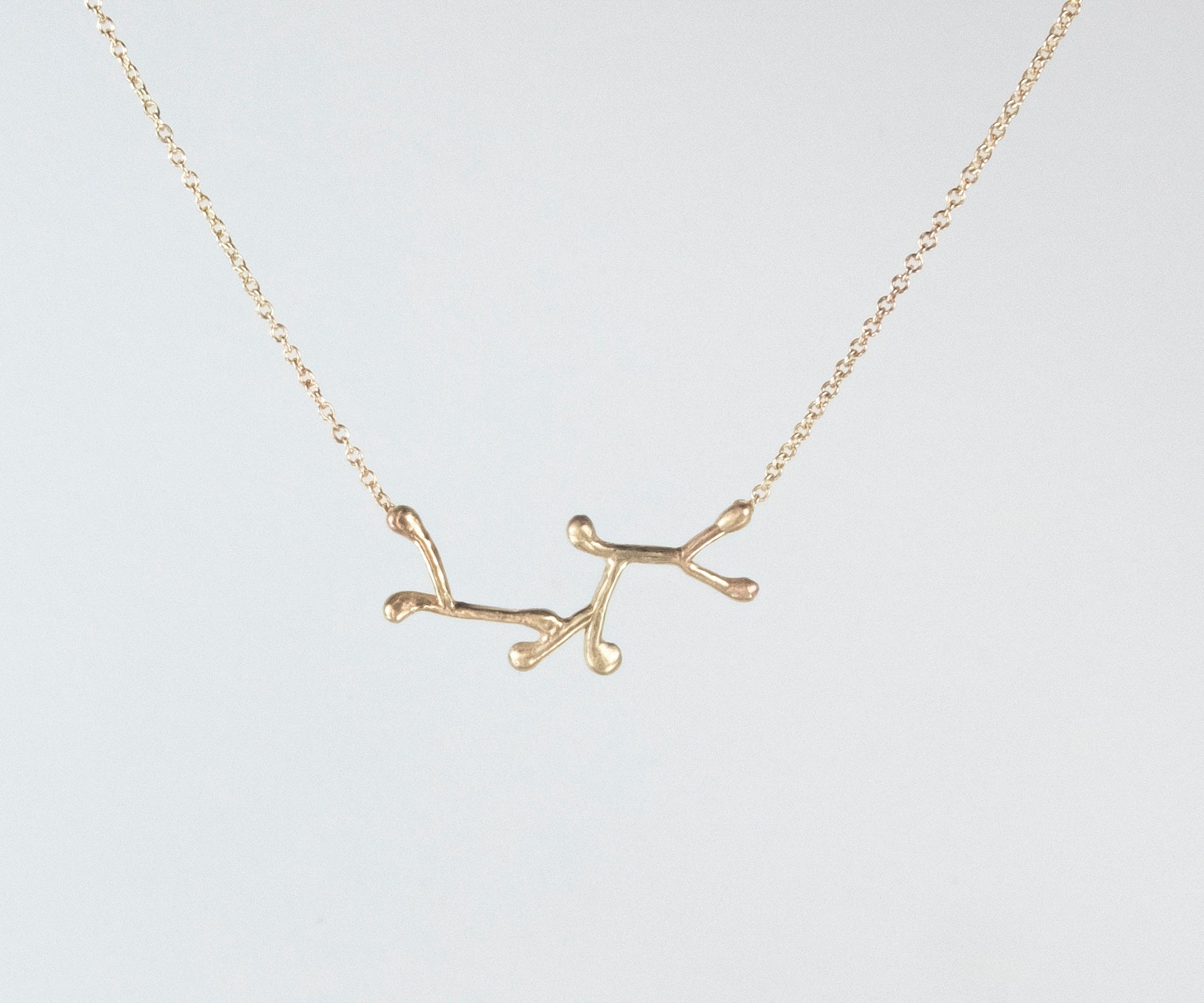 Lovely and organic in form delicate necklace in yellow gold. It is part of Kleks collection which is loosely translated from Polish as splash. The collection is inspired by water drippings that are affected by gravity and other natural forces creating beautiful flowing designs.