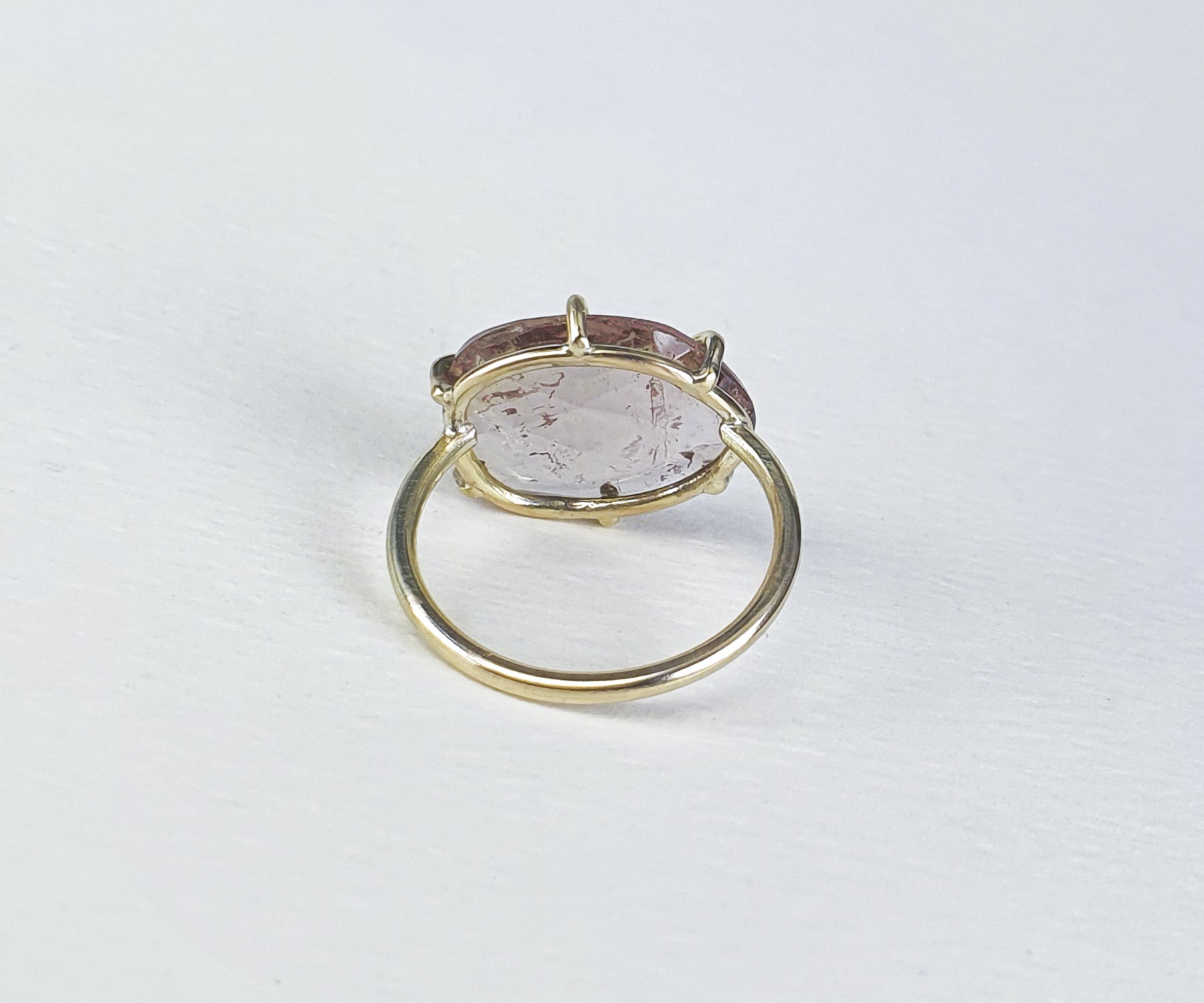 Large Pink Champagne Tourmaline Candy Ring in Solid Gold