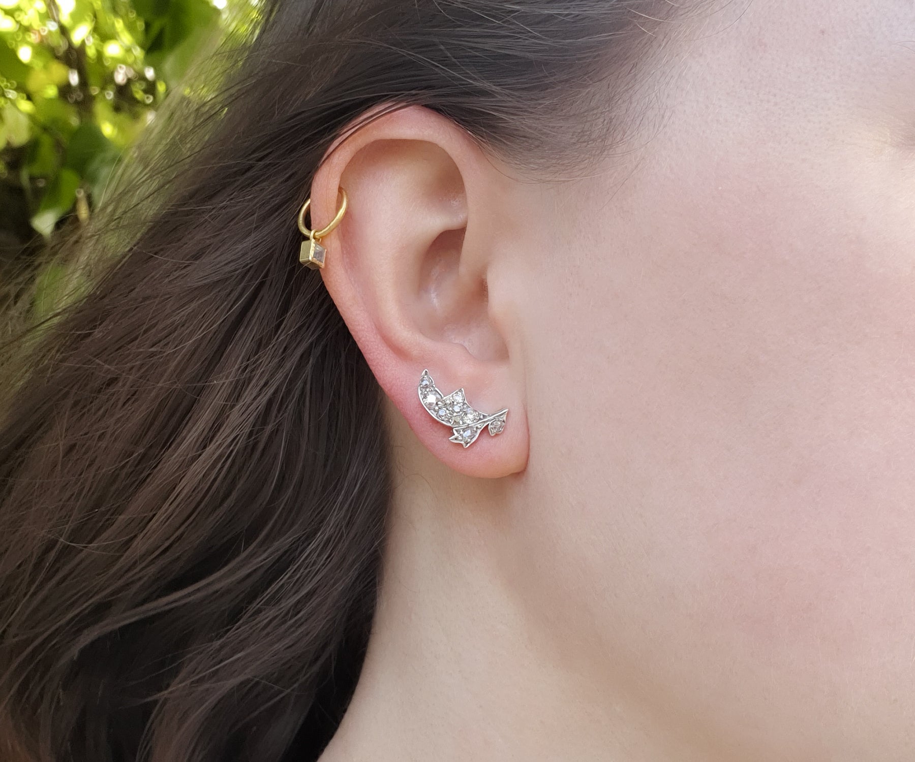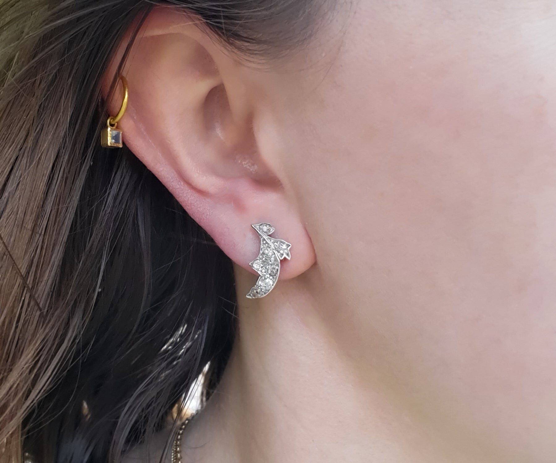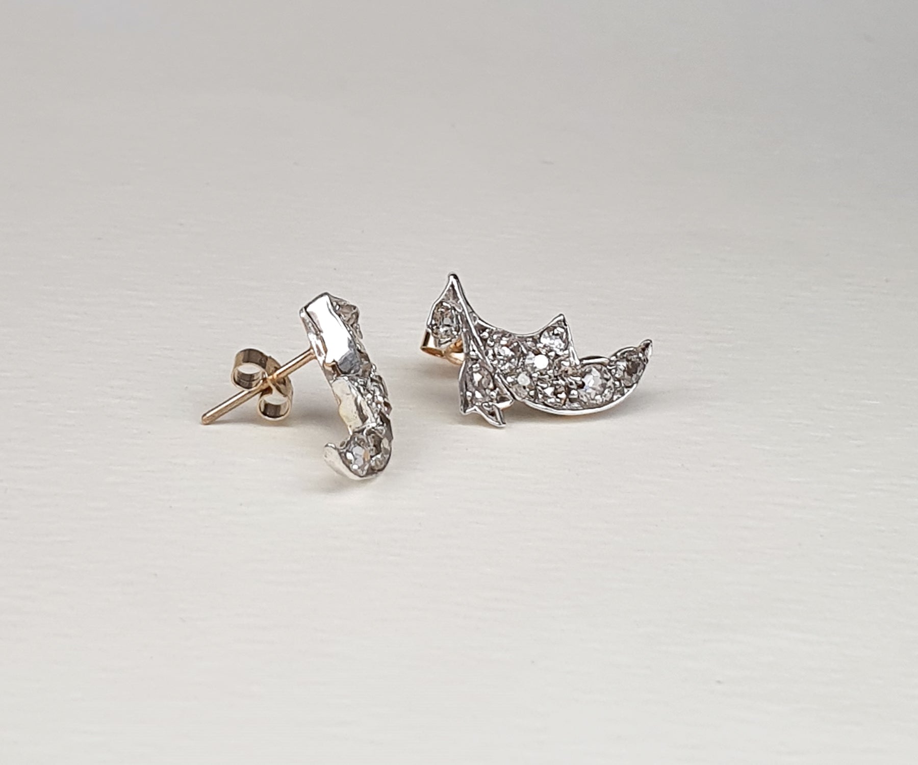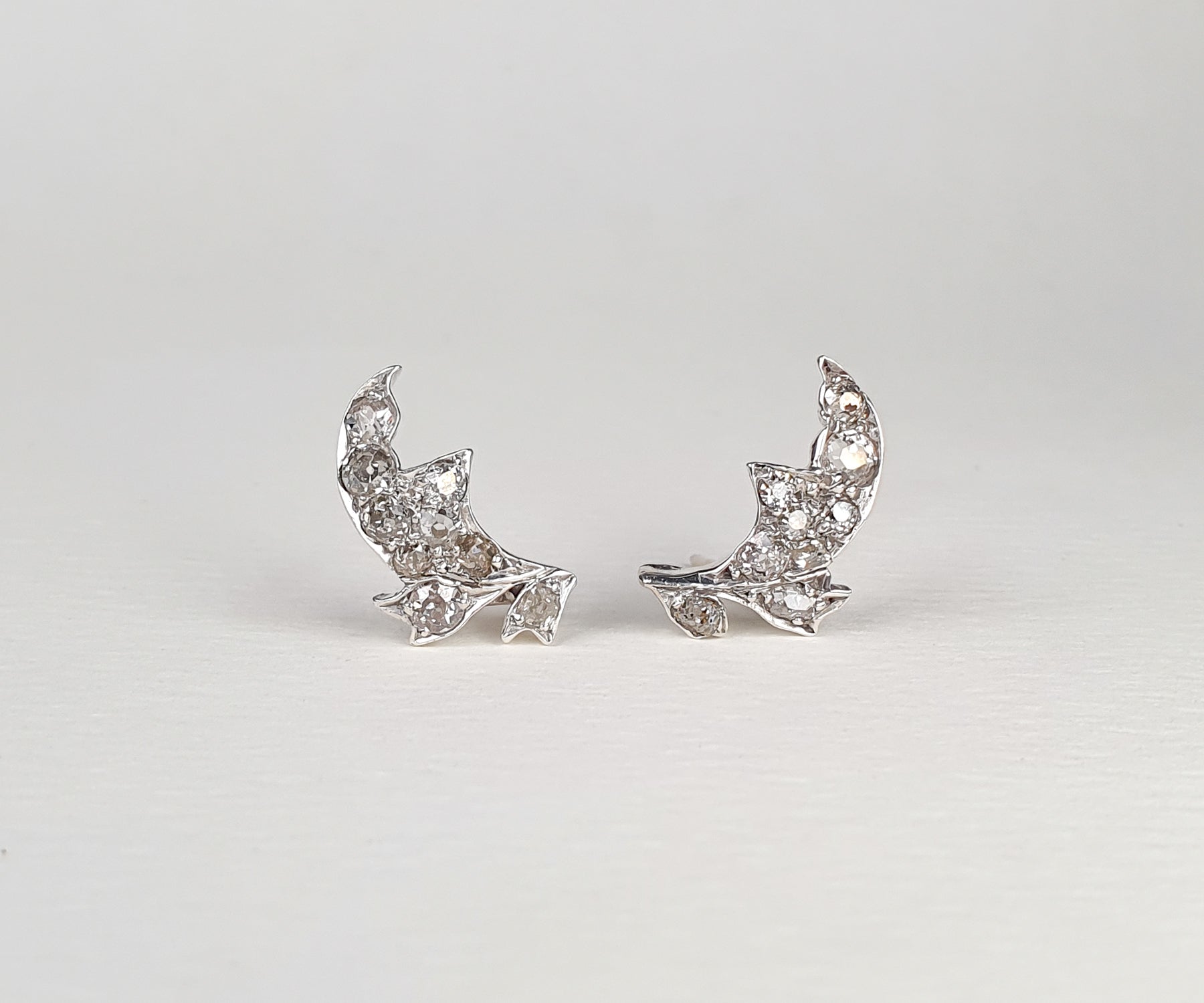Late Victorian Old Cut Diamond Leaf Stud Earrings