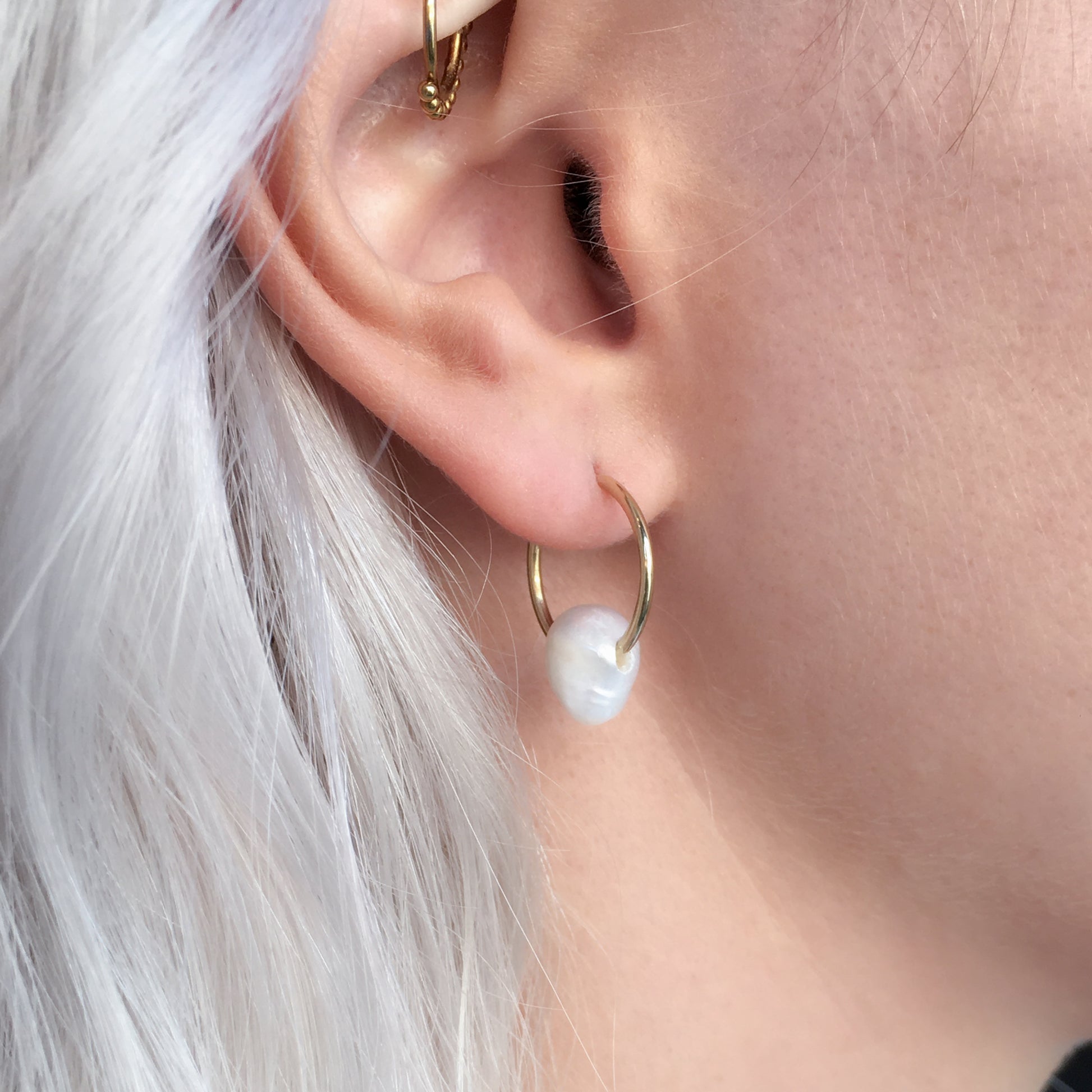 Mama Ania Hoops with White Pearl