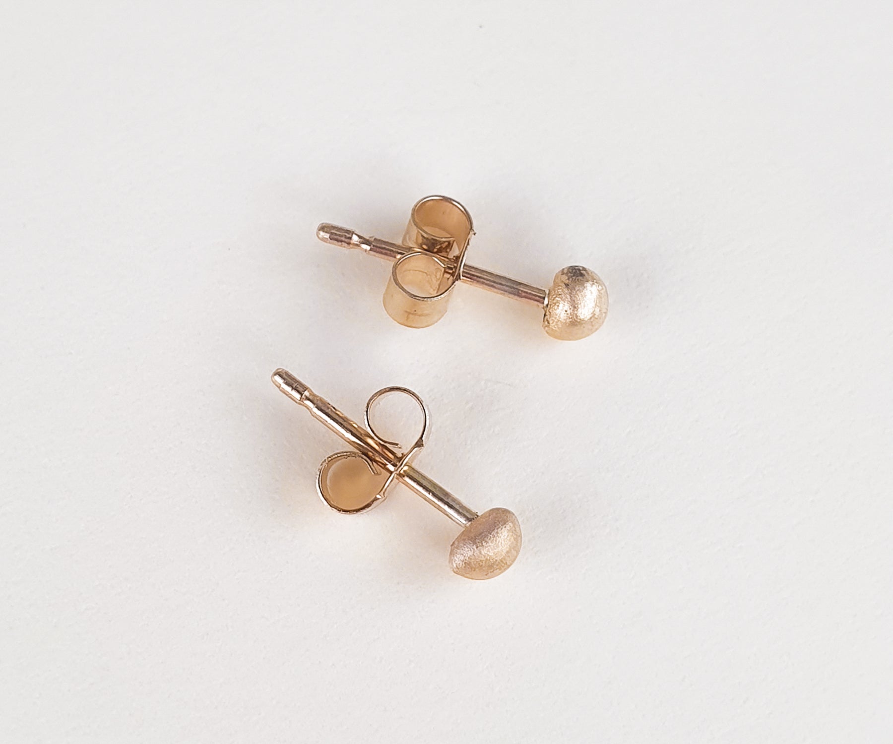 One-of-a-kind earrings made from recycled 9ct gold. These little baubles were created by melting down leftover gold from our manufacturing process. Each bauble is unique we preserve the original gold crystal structure that forms during melting by leaving the earrings unpolished which is why they have a soft, velvety look.
