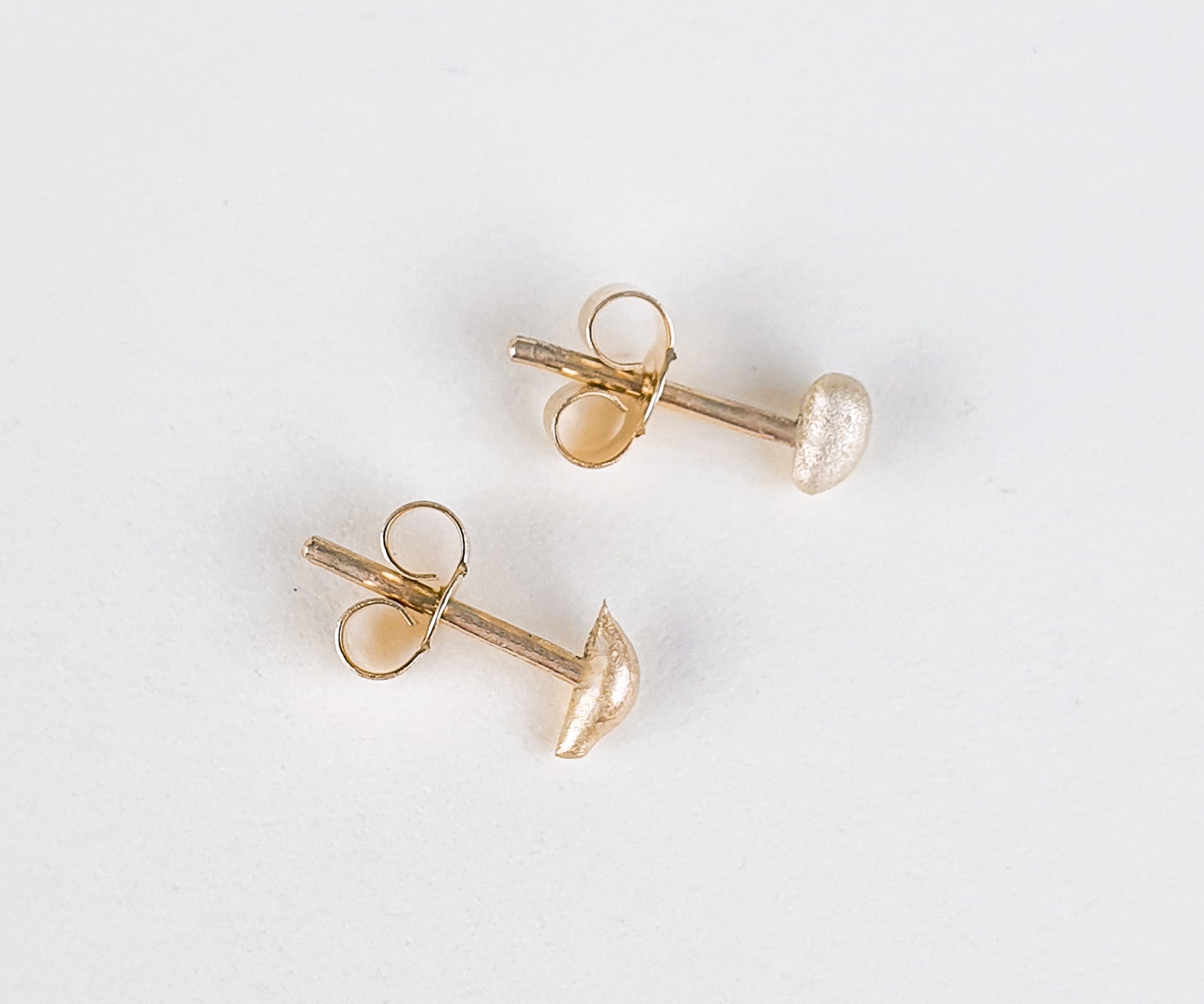 One-of-a-kind earrings made from recycled 9ct gold. These little baubles were created by melting down leftover gold from our manufacturing process. Each bauble is unique we preserve the original gold crystal structure that forms during melting by leaving the earrings unpolished which is why they have a soft, velvety look.