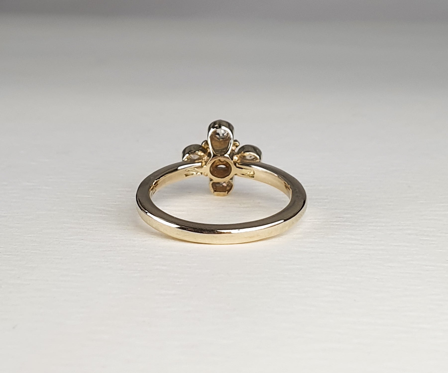 The diamond section once had natural half pearl glued in the middle, but since pearls are soft and not the most suitable for rings, especially if they are glued on, I decided to replace it with a gold cross. The shank was made from a 14ct gold chain, therefore the ring is completely recycled.