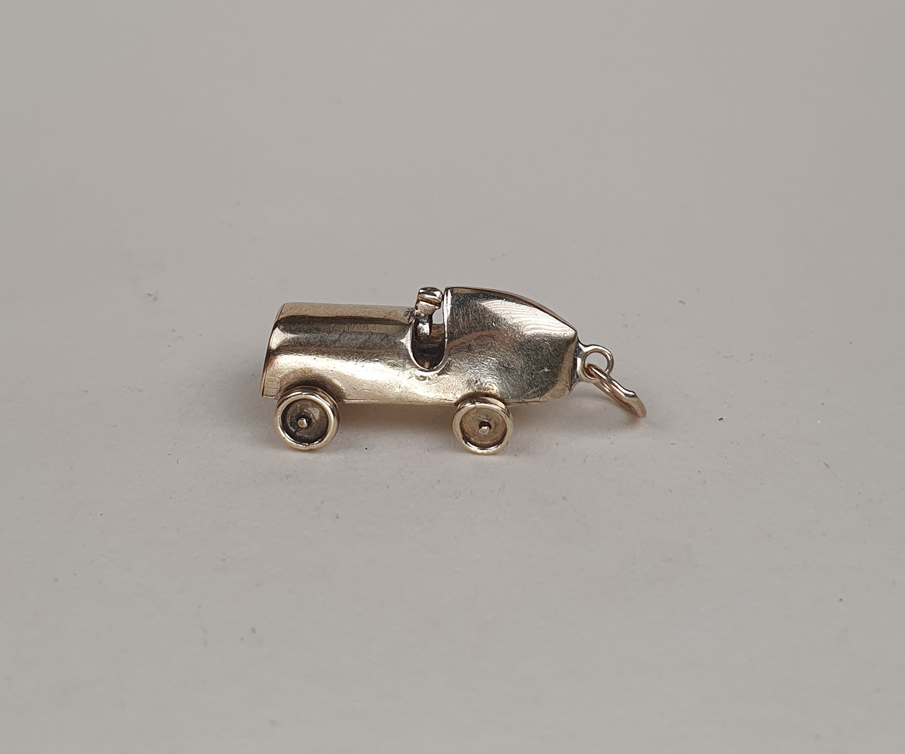 The coolest charm for a car racing lover! With spinning wheels and a simple aero-dynamic design, this is one of the most elegant depictions of pre-WW1 racer cars, of which the Beast of Turin is most well known.