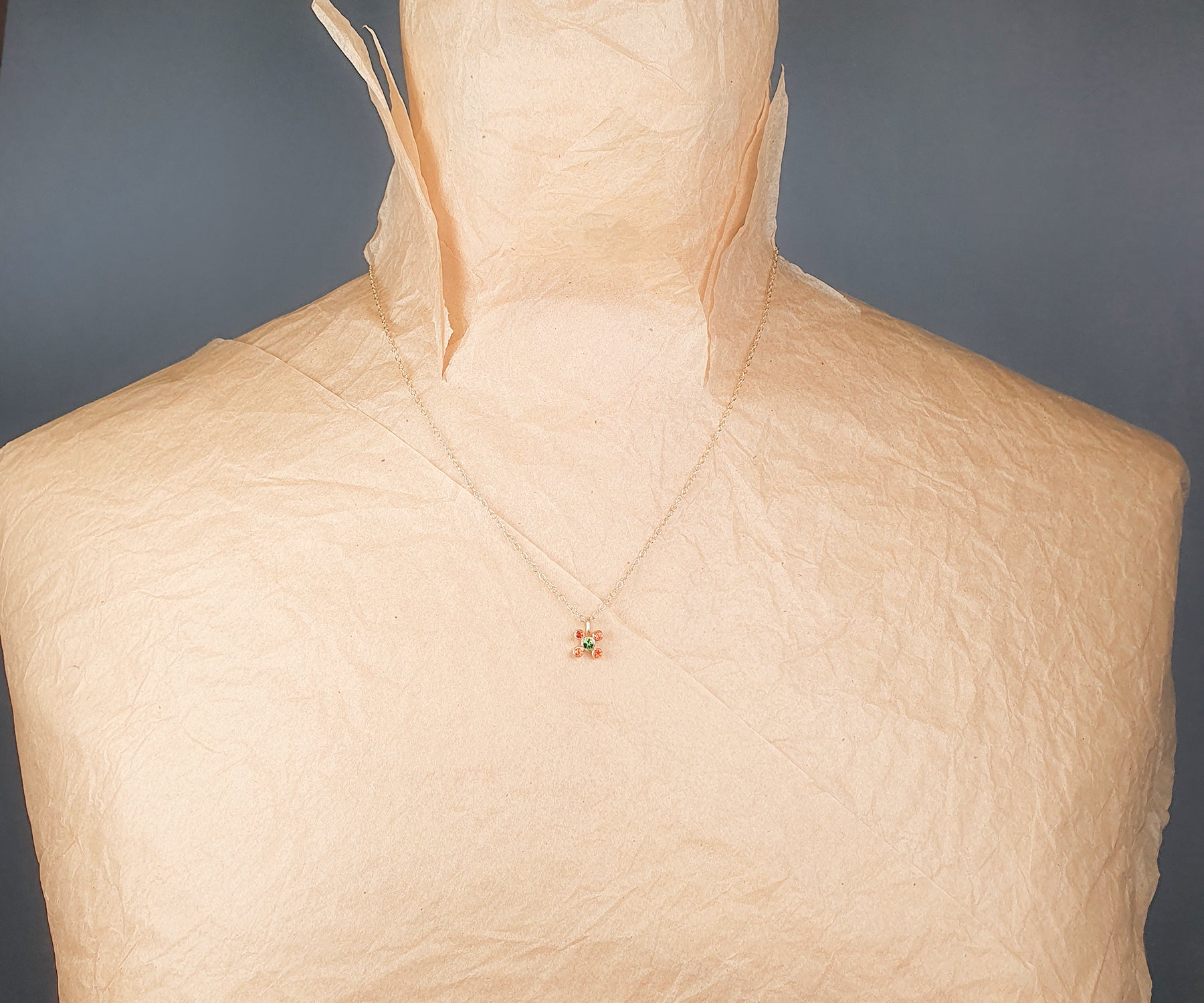 Measurements: the necklace is 18inches long, the pendant is approximately 6mm x6mm.