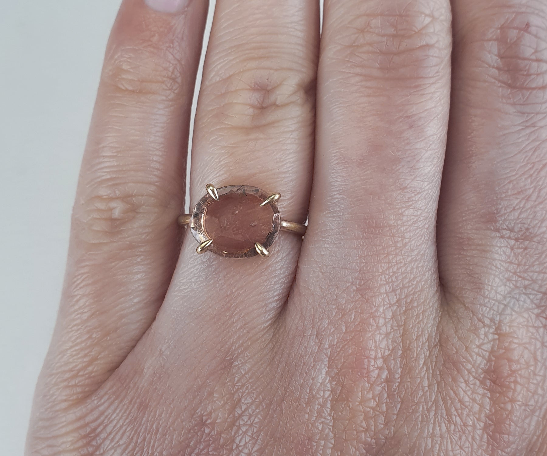 Materials: SMO 9ct yellow gold and peach tourmaline.