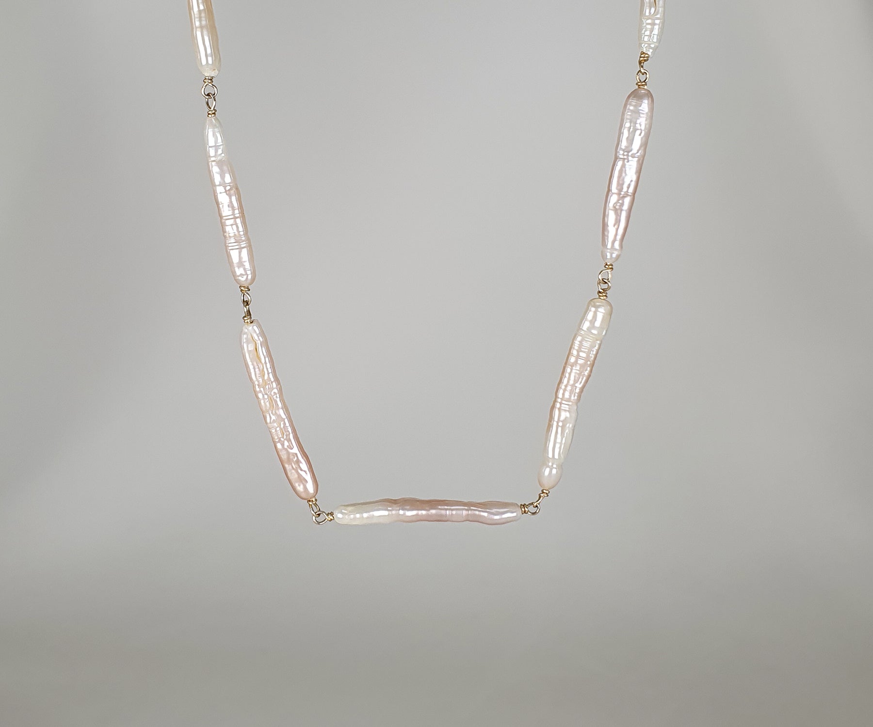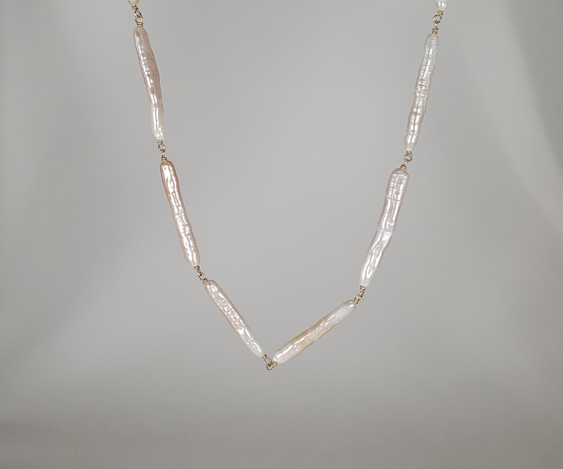 A different kind of pearl and a different kind of necklace - an anti-thesis to a usual round white pearl necklace, this one is dedicated to people who like it a little differently!