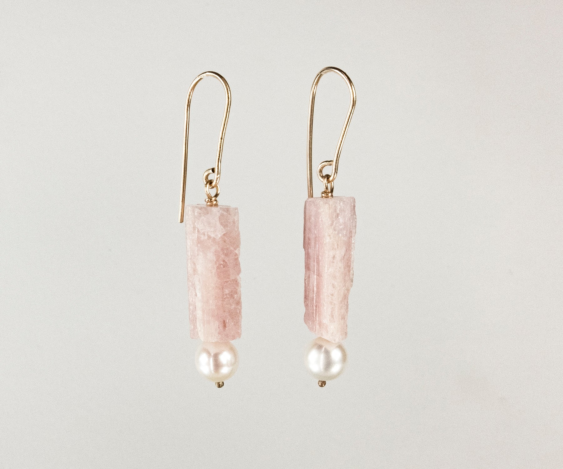 Fantastic combination of velvety rough pink tourmaline and smooth round white pearls. We love the pairing - the colours are subtle yet very enticing.