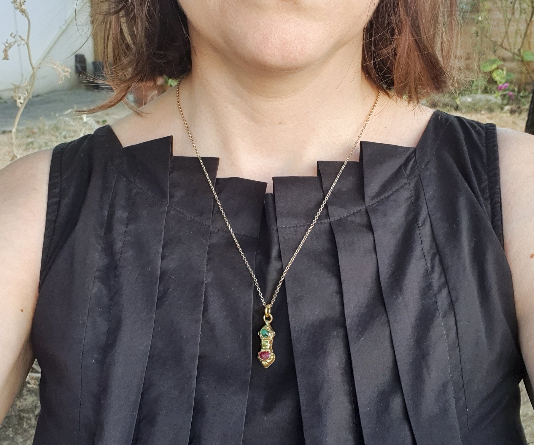 A stunning combination of buttercup yellow, emerald green and ruby red is all you need to uplift your mood. This necklace spacer, as it was its previous purpose, can now become the centrepiece of a necklace - let's give it a round of applause!!
