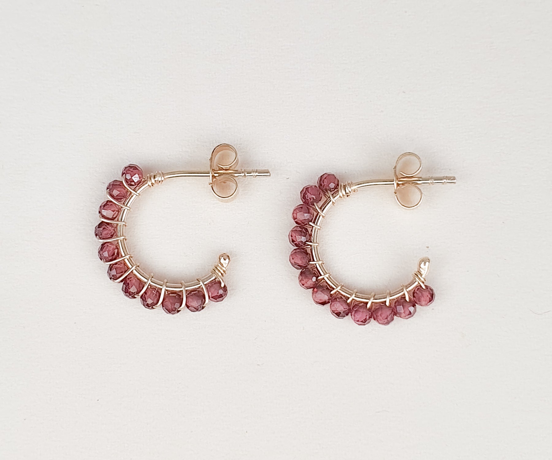 Small Aga Pink Garnet and Gold Hoops