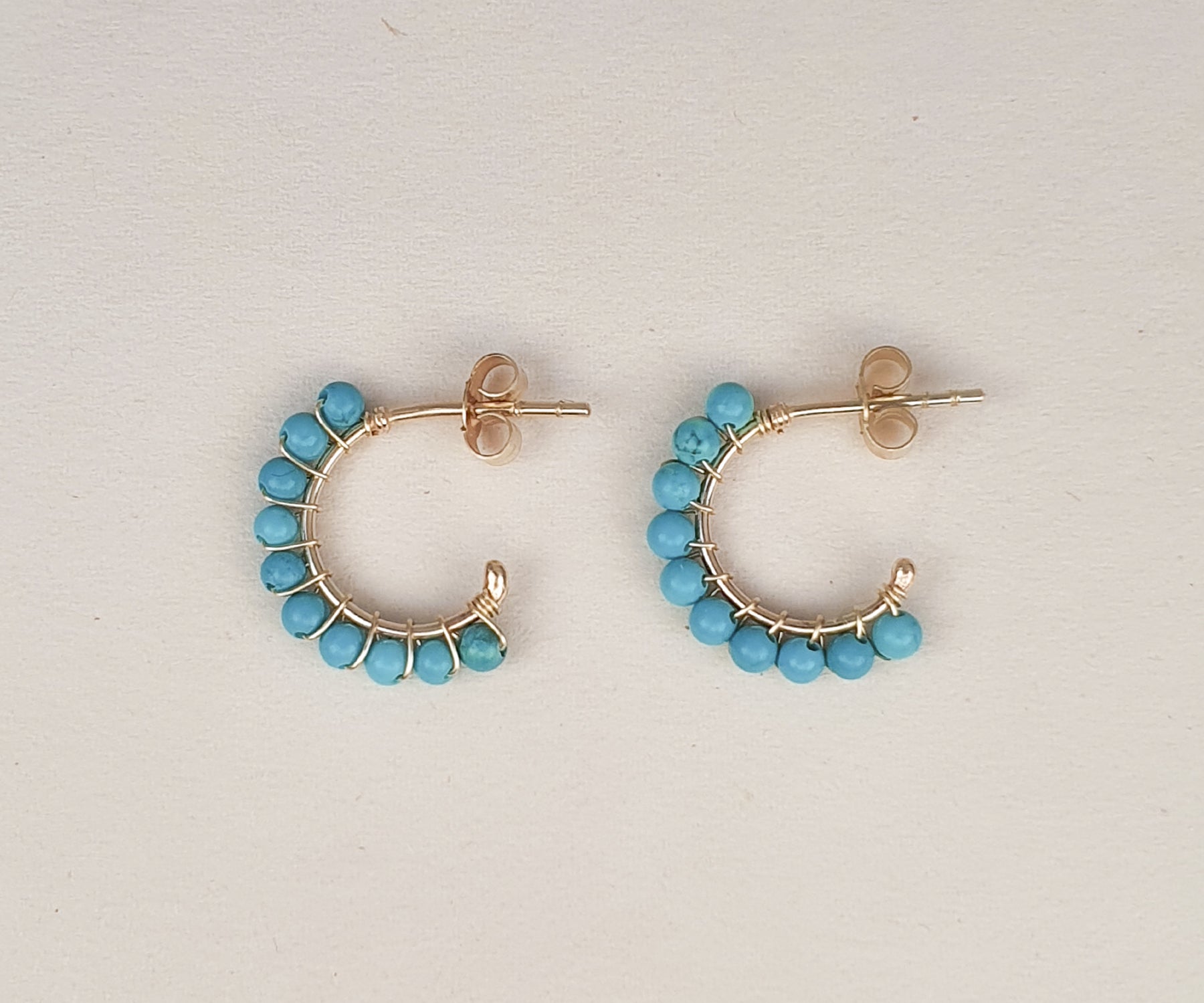 You can never have enough of hoops! That is why hoops like these are the 'it' gifts that will always bring smile on someone's face. Made with astonishing turquoise beads threaded on a simple gold hoop.