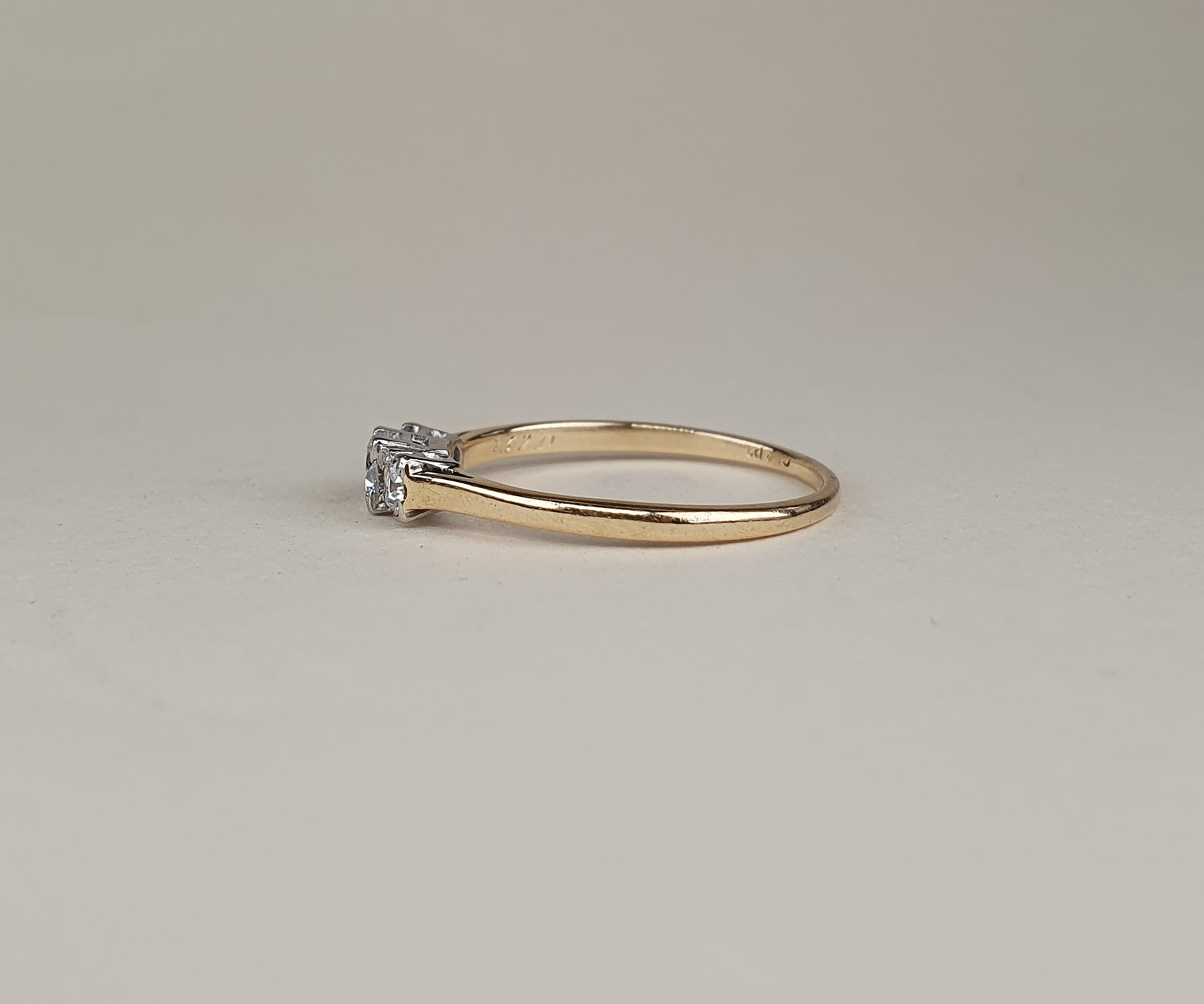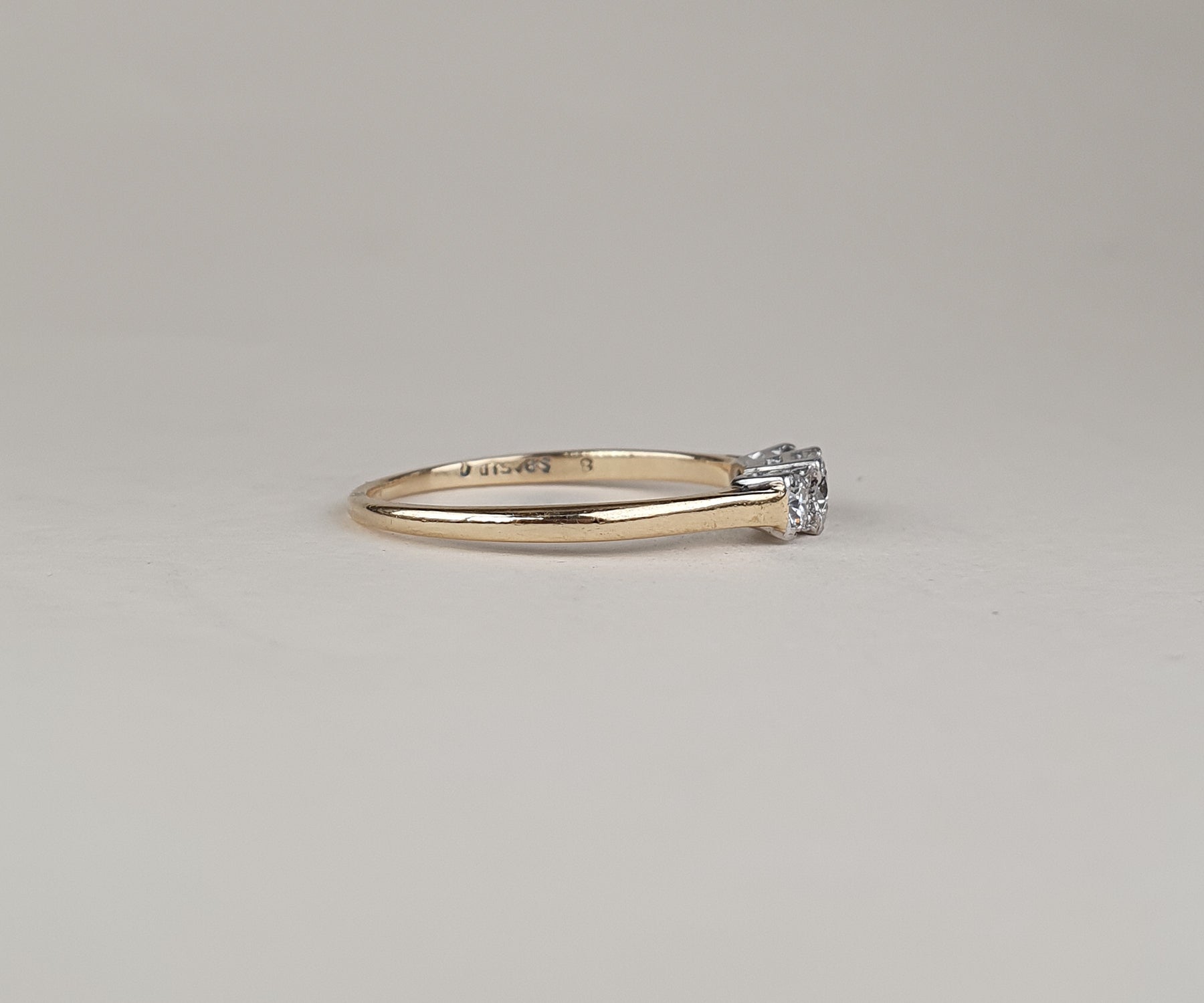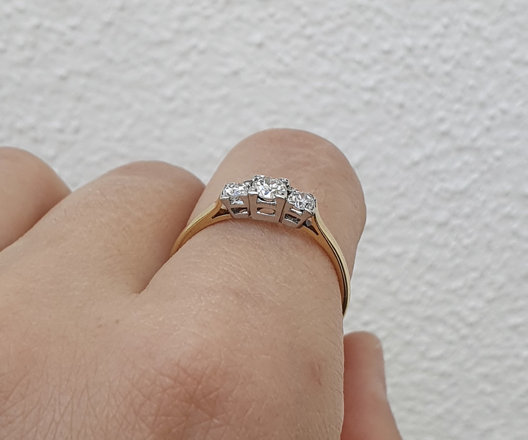 Gorgeous trio of old cut diamonds - I love how petite this ring looks until you see the serious sparkle - it could seriously light your way at night! This spectacle is thanks to the incredibly high colour E-F of the diamonds. Another feature worth mentioning is the square beaded setting for these adorable round shaped stones - a precursor to the geometric styles of Art Deco.