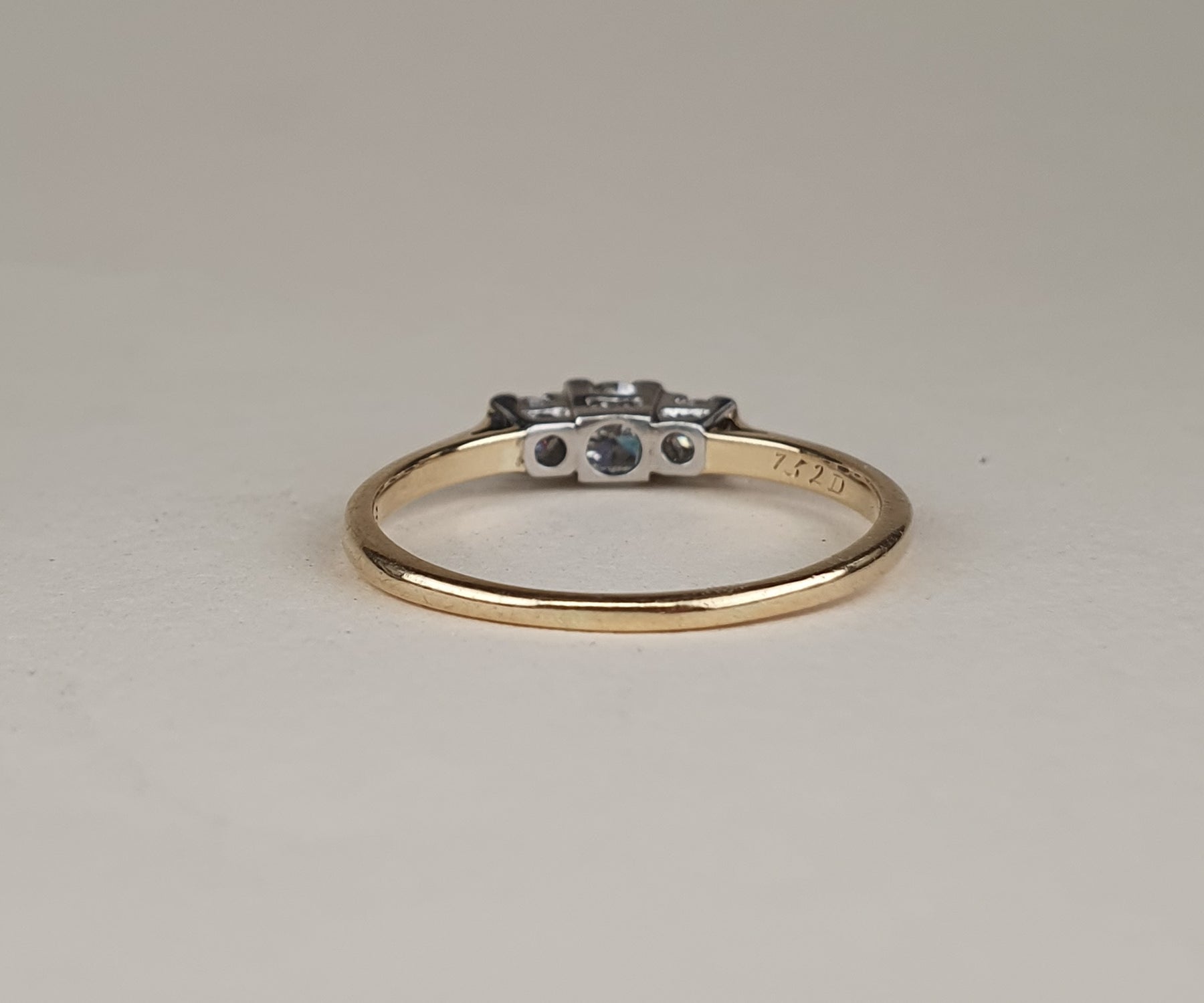 Three Stone Edwardian Diamond Ring in Gold and Platinum.