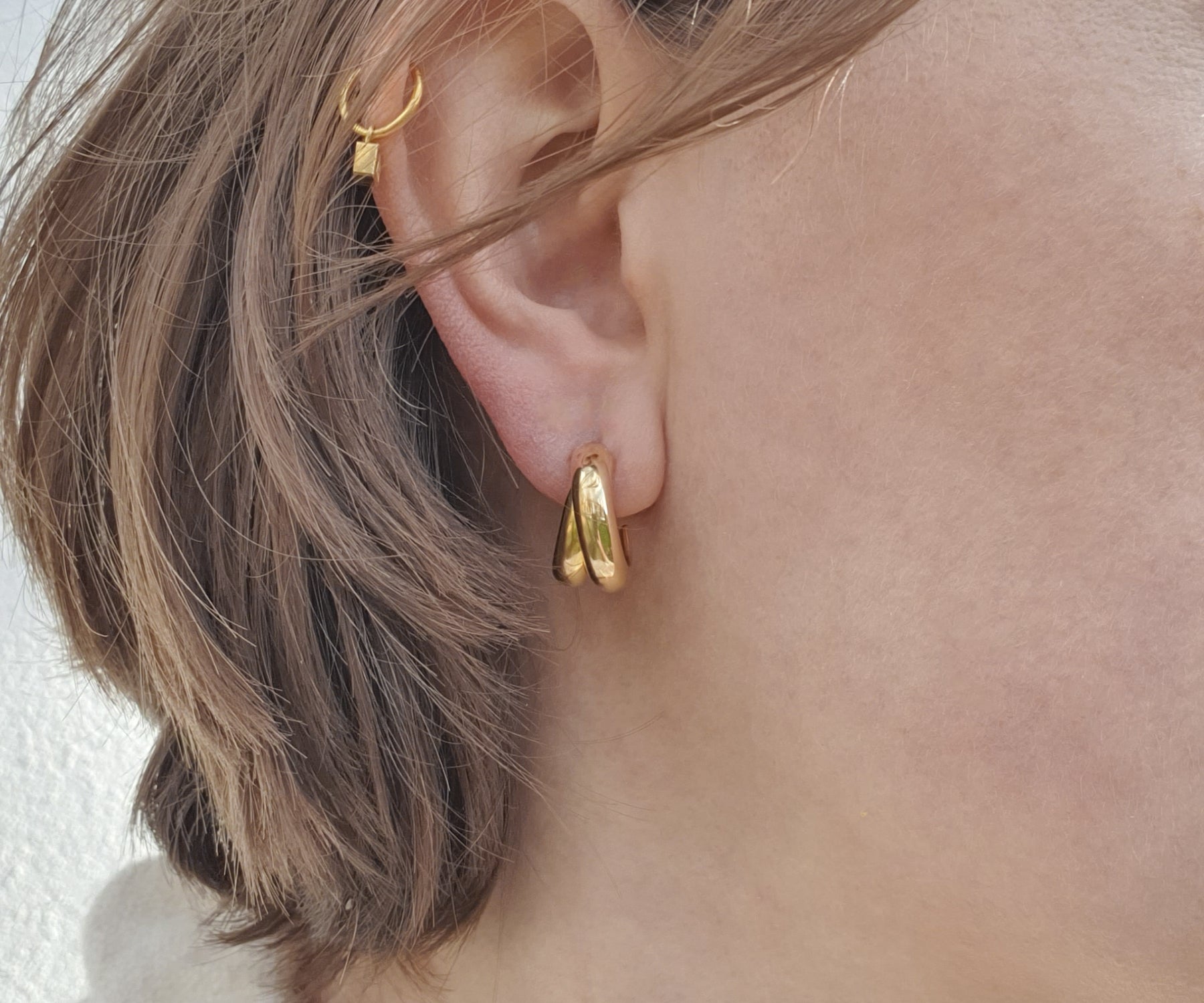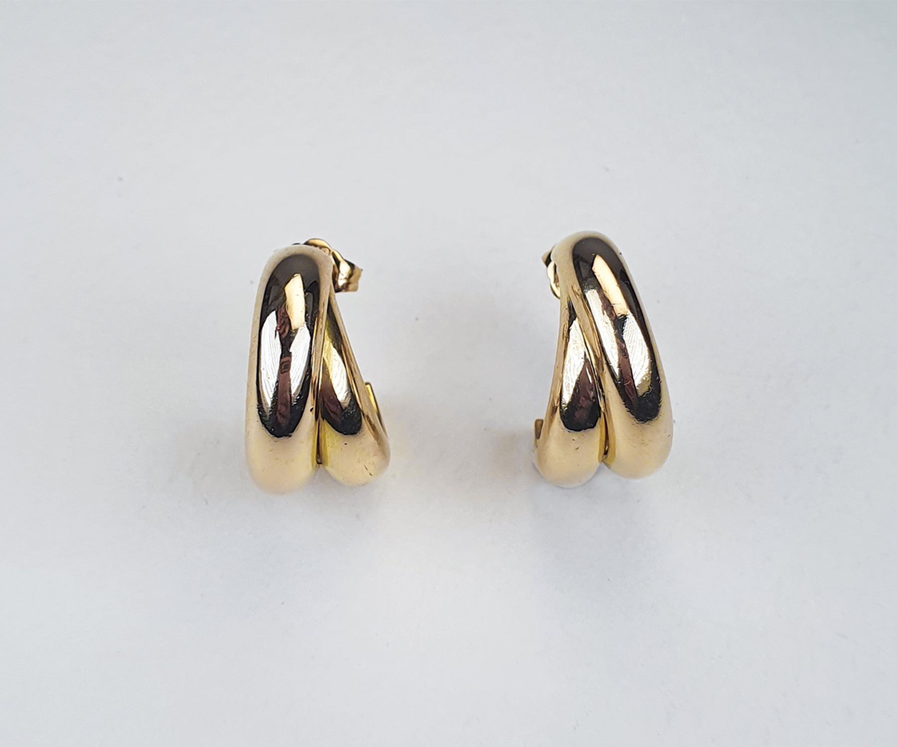 Incredibly elegant 18ct yellow gold half-hoop earrings. The weighty crossover hoops are a perfect example of a modern earring - they will go with just about anything - evening attire or sportswear.