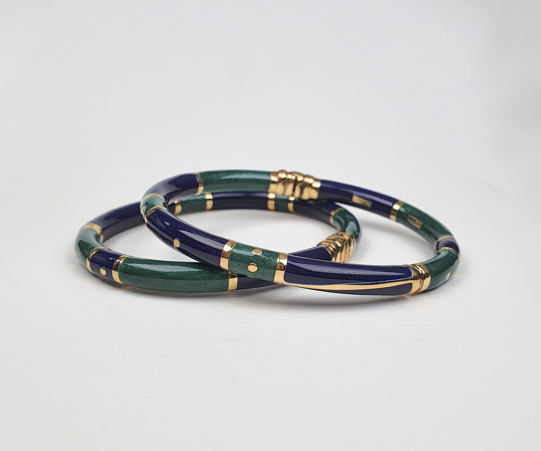 Vintage Navy Blue and Emerald Green Italian Enamelled Bangles
