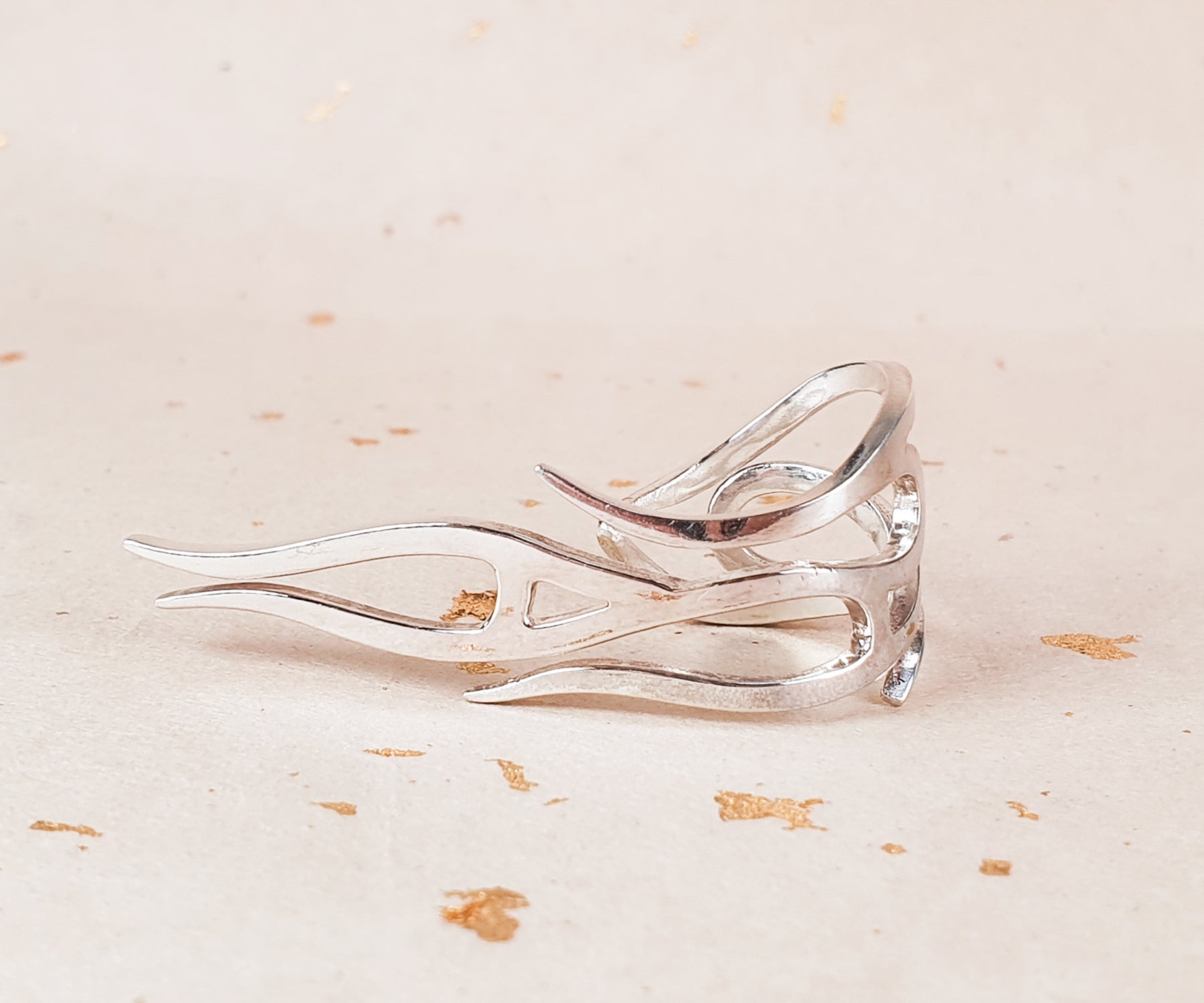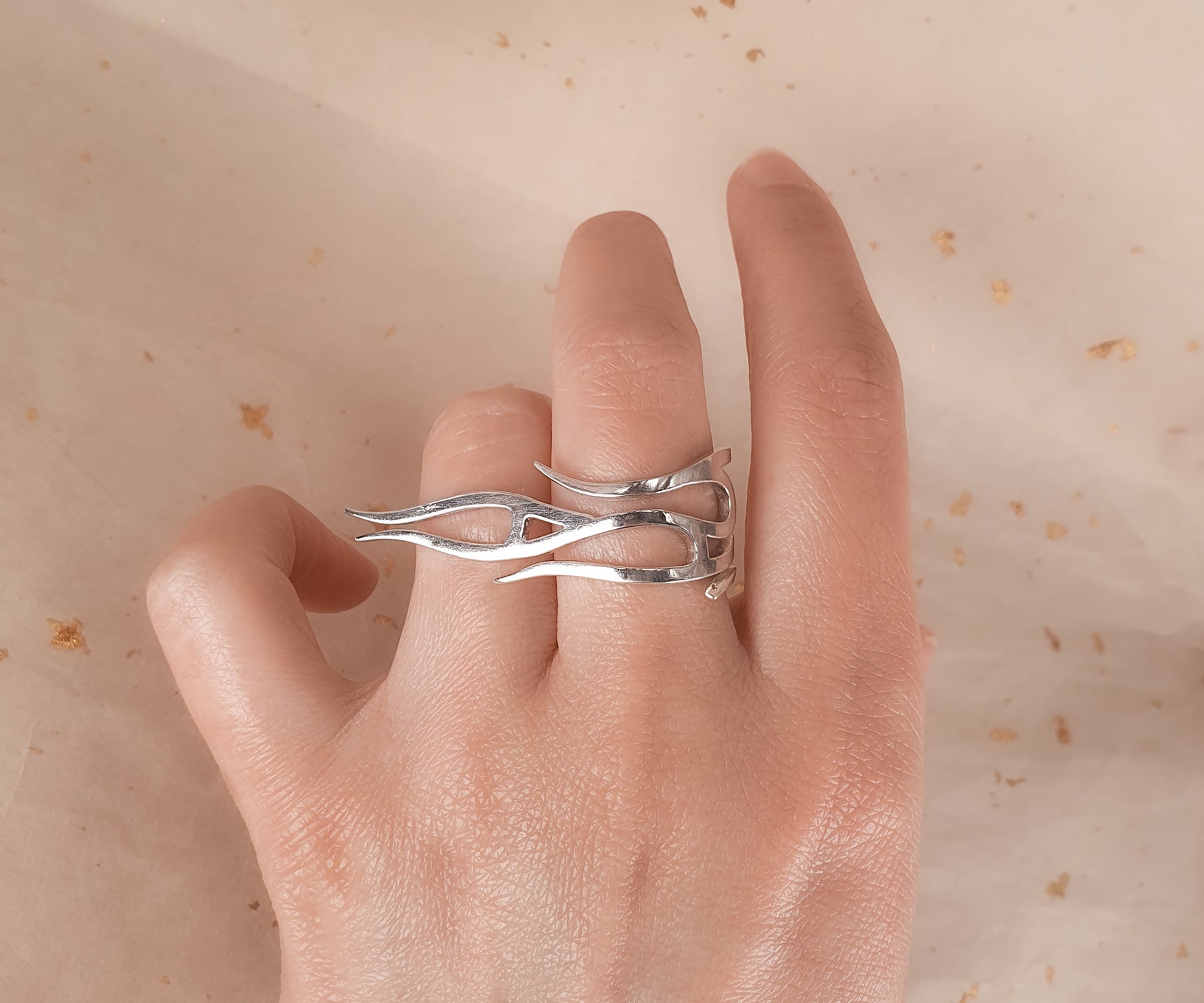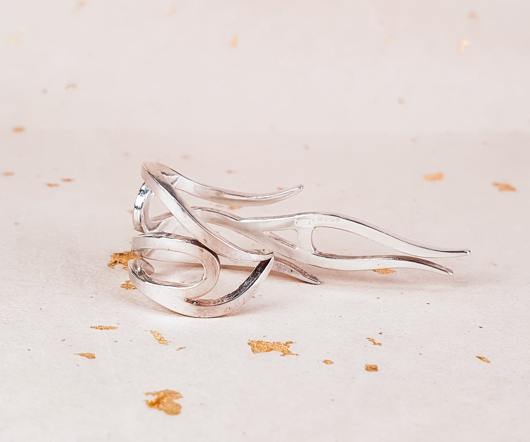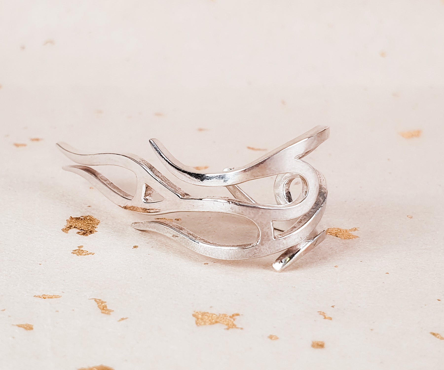 Unusual, hand pierced silver open ring. The design is a rockabilly flame that can often be seen painted on classic American cars. The ring can be relatively easily resized as it is of open design.
